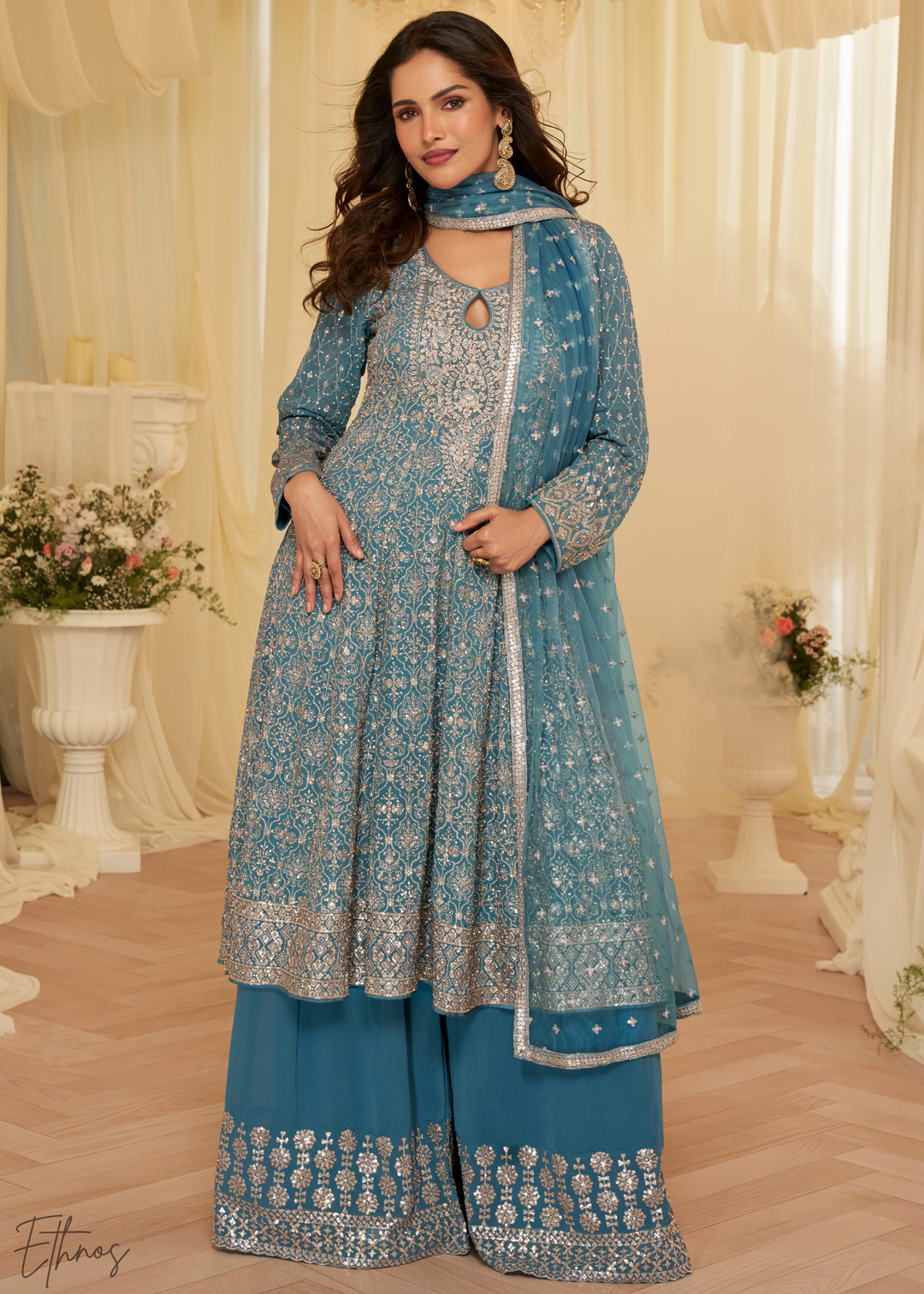 Blue Georgette Anarkali Palazzo Suit