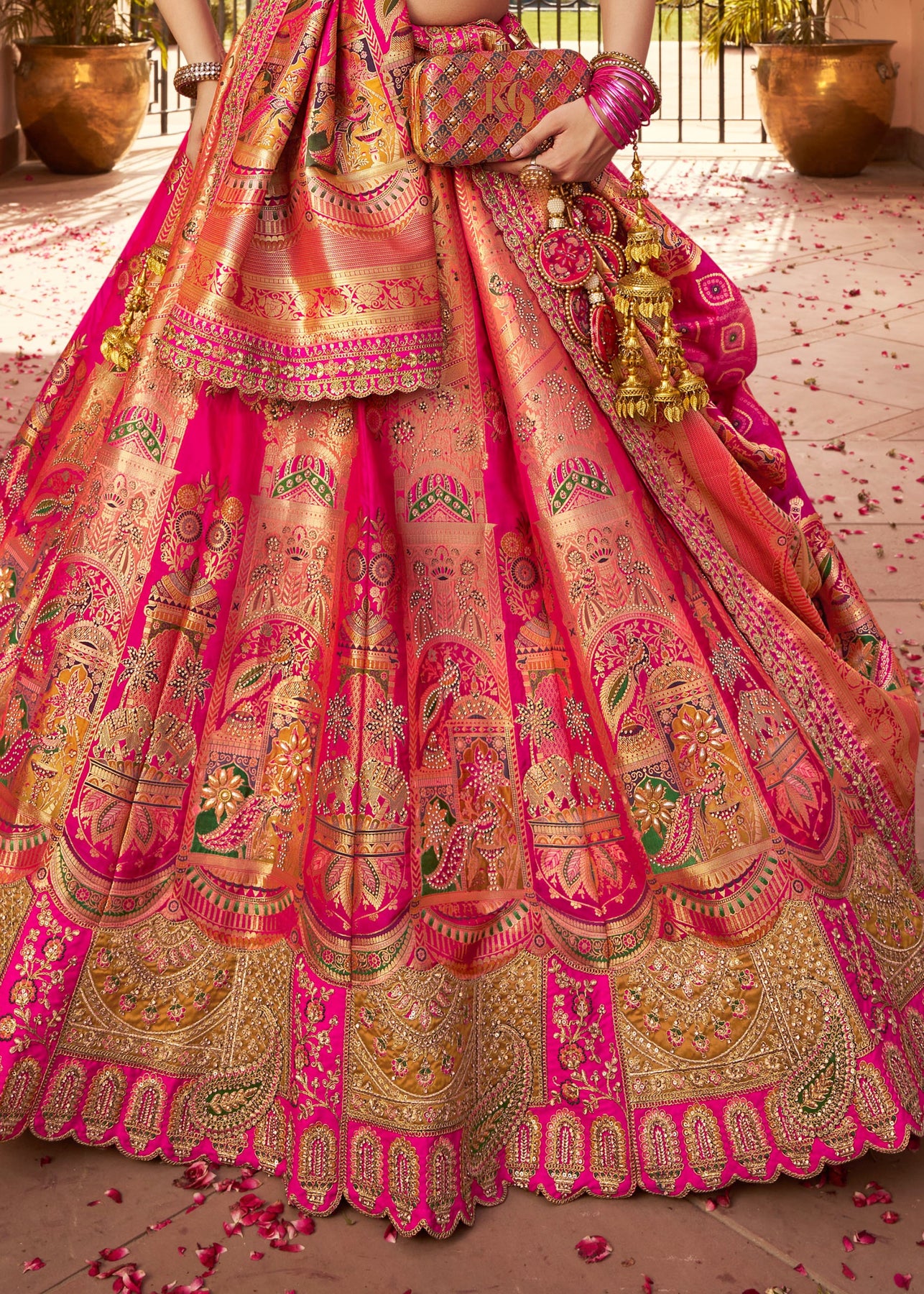 Deep Fuchsia Pink Banarasi Silk Lehenga With Golden Zari Work