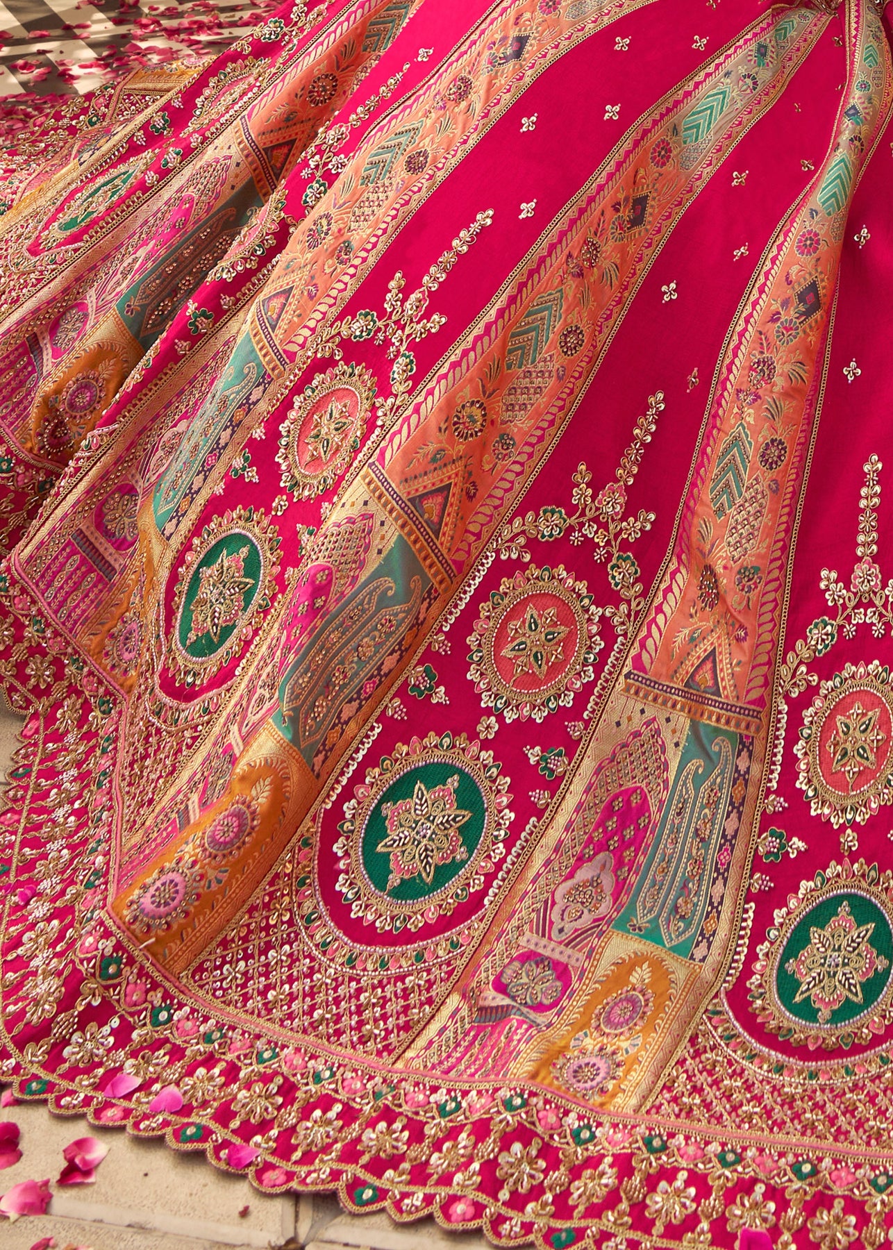 Punch Pink Banarasi Silk Lehenga Choli With Zarkan And Cut Work