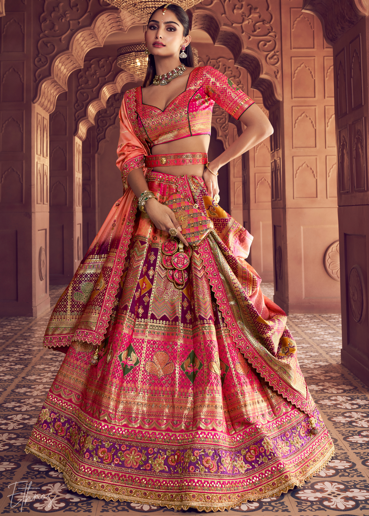 Shaded Pink-Peach Banarasi Silk Lehenga