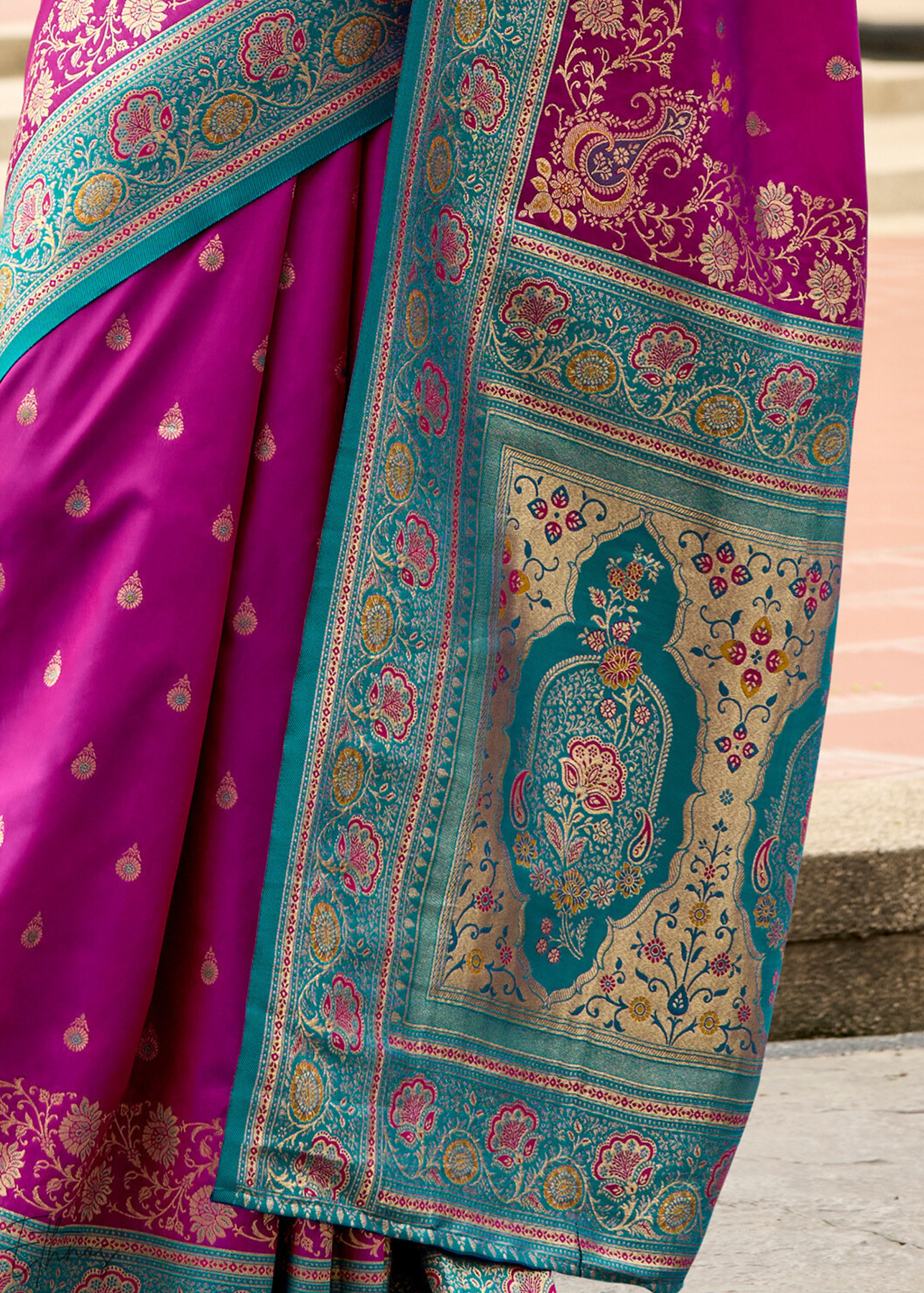 Blouse: Banarasi art silk with intricate motifs.
