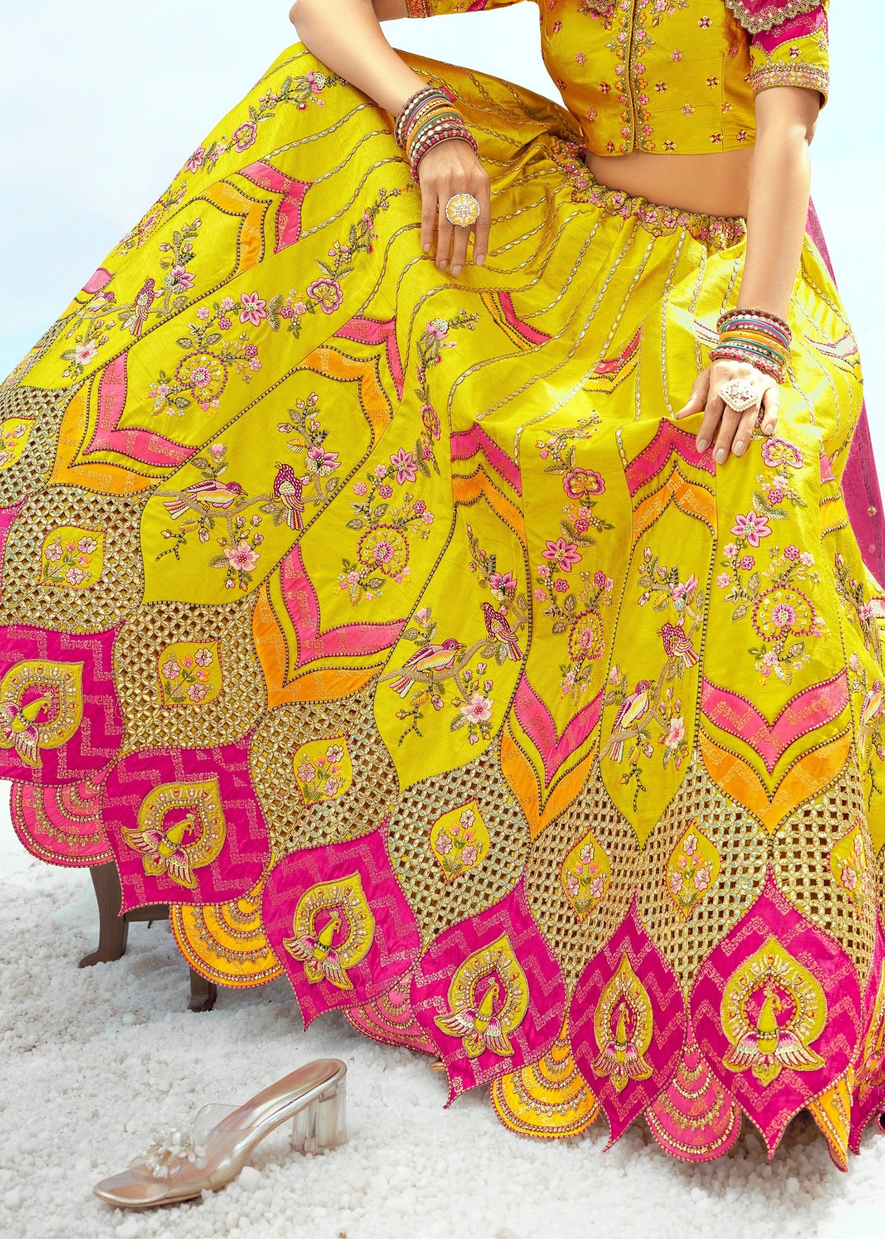 Yellow And Pink Silk Lehenga With Cut Work Border