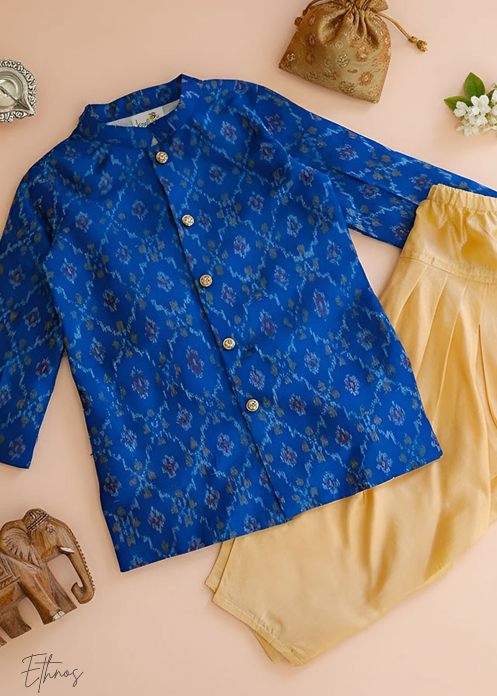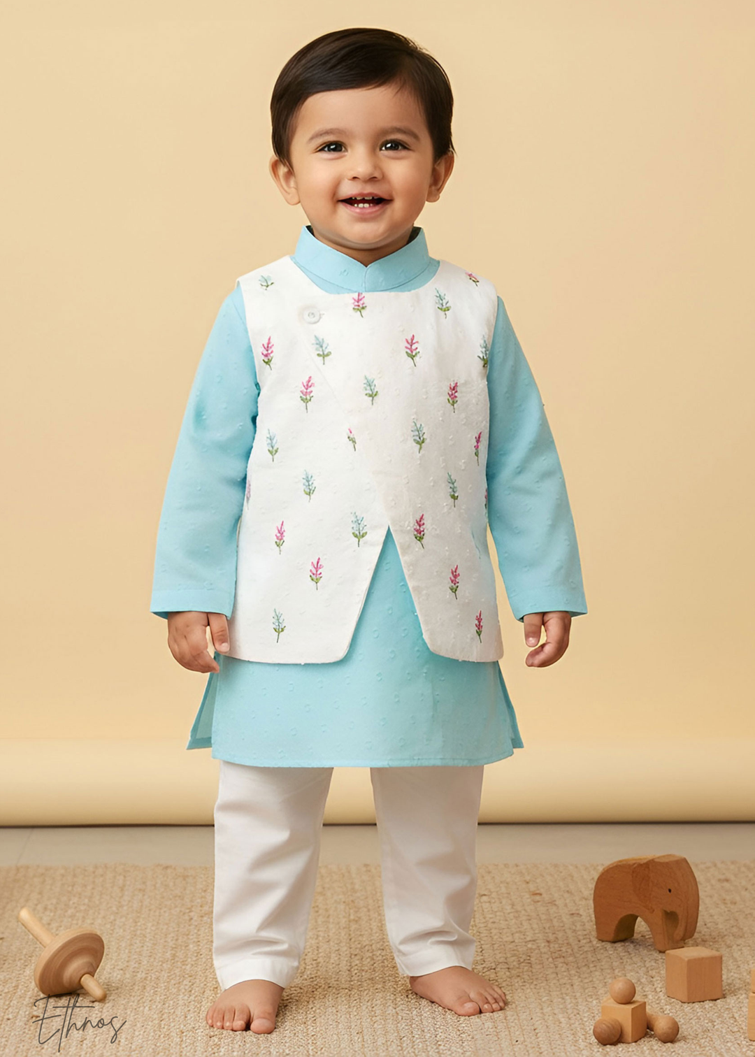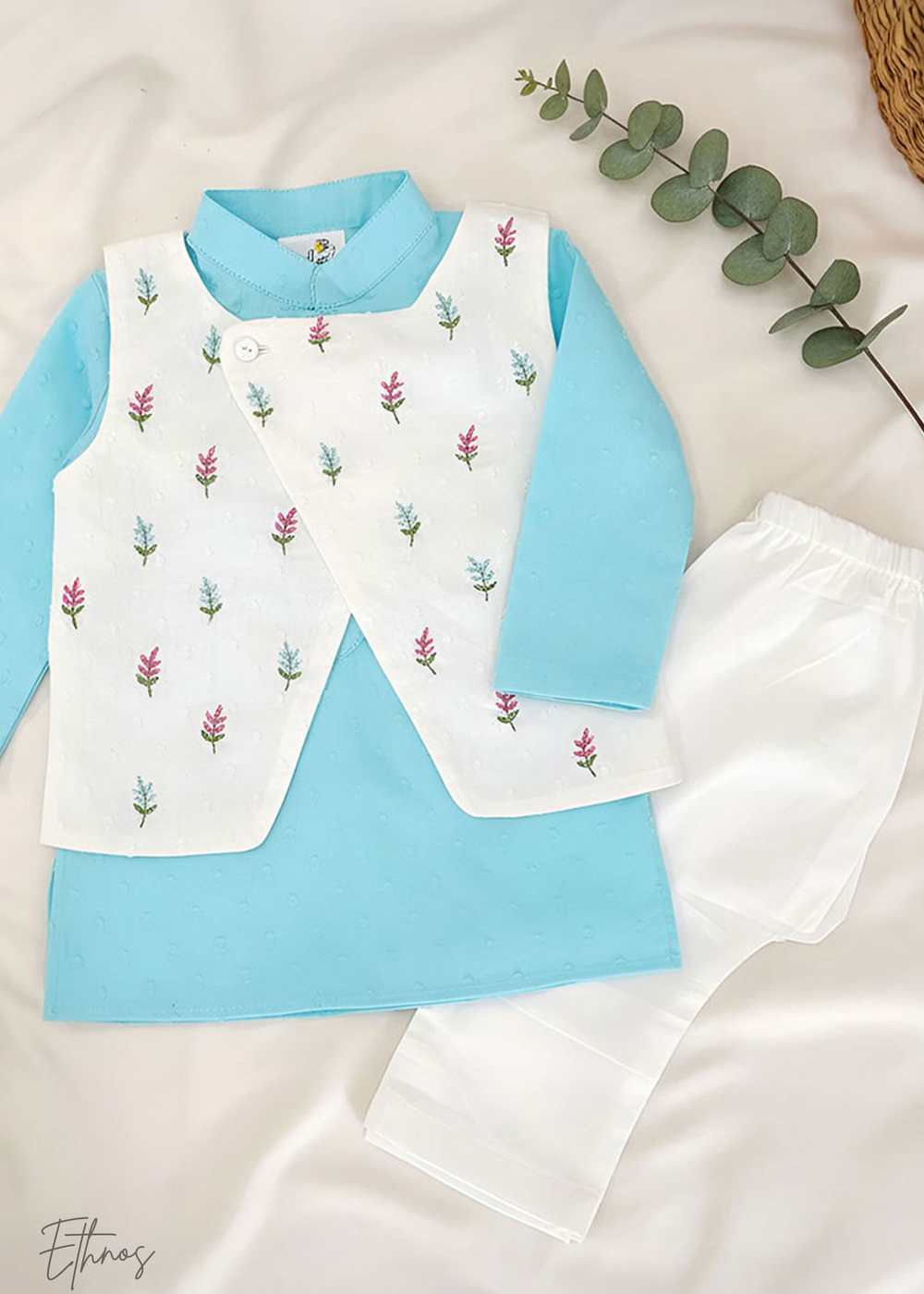 Organic Cotton Light Blue Angrakha Kurta with Pajama - Toucan