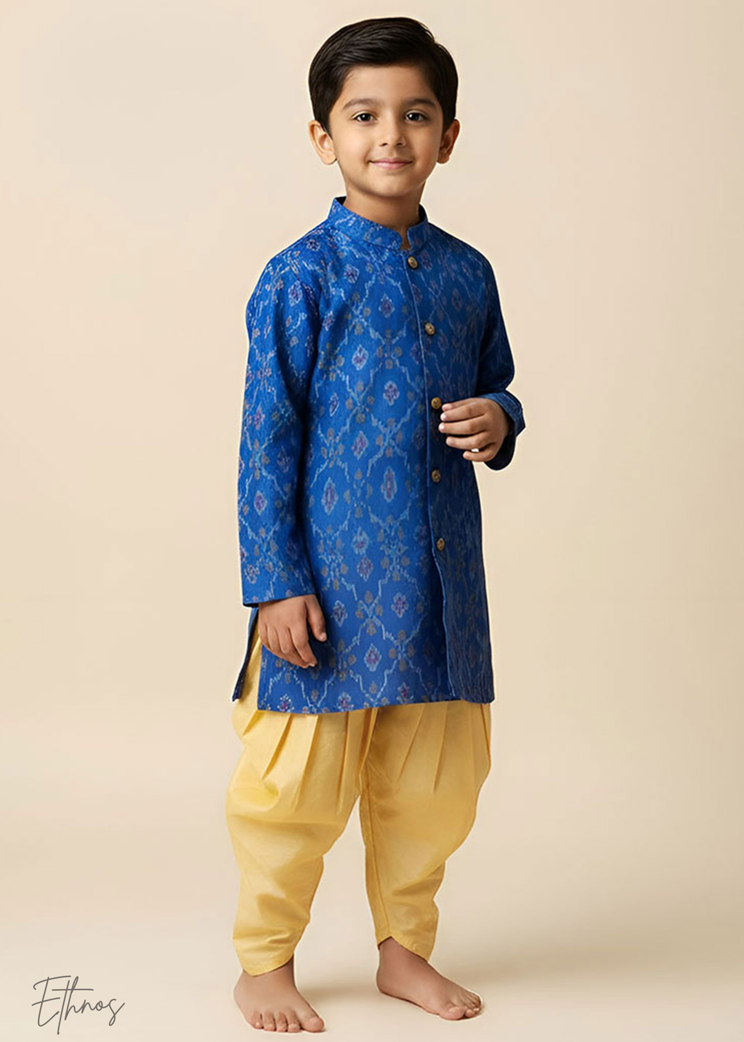 Raw Silk Dark Blue Ikat Kurta with Patiyala Pants