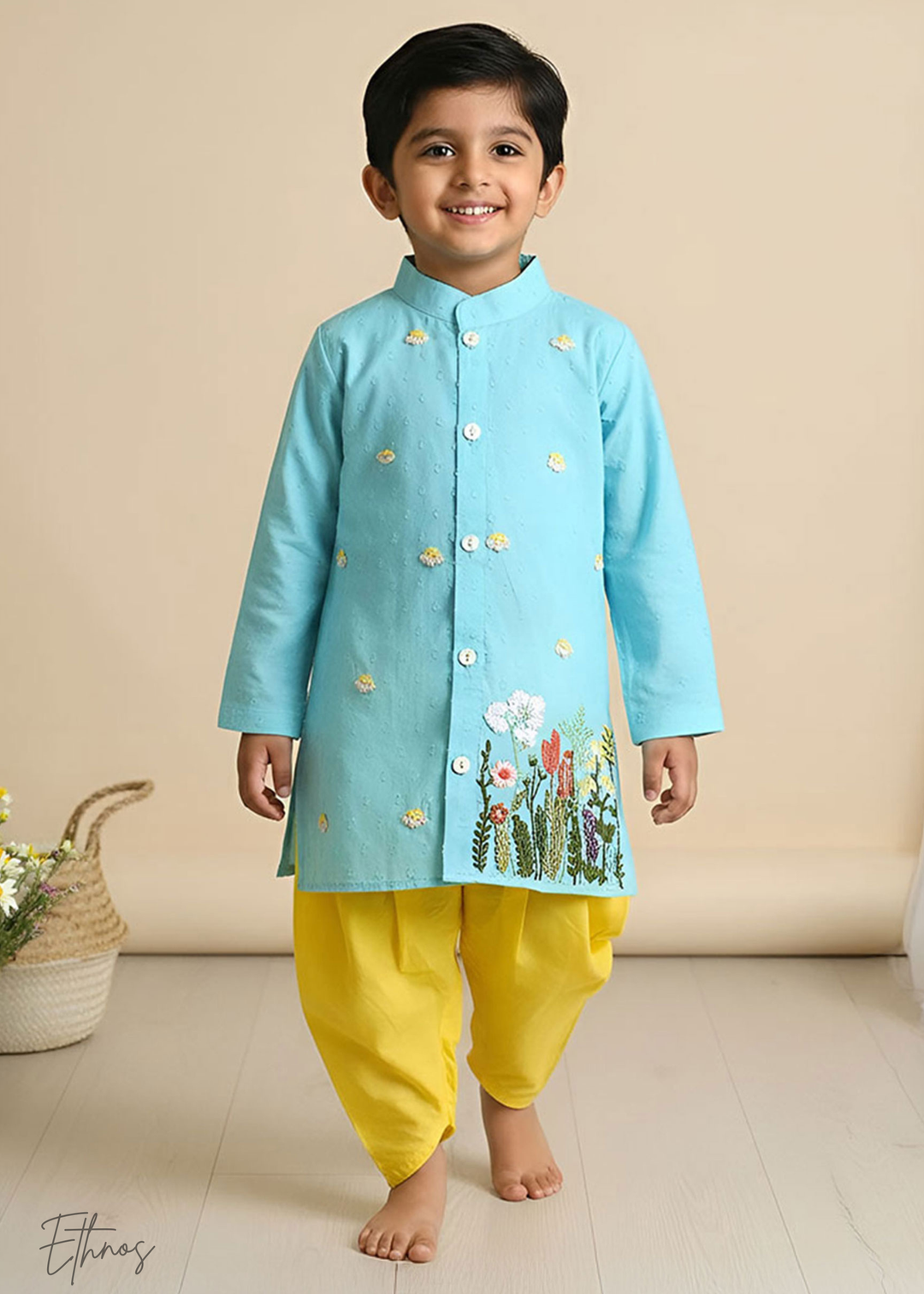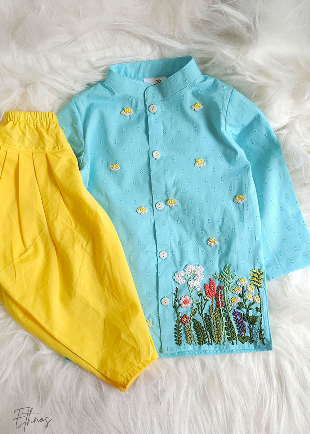 Organic Cotton Light Blue Kurta with Pajama - Sunflower