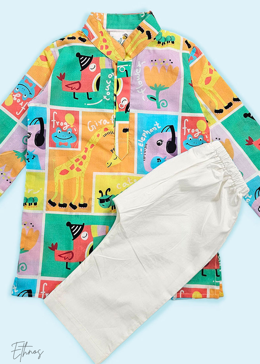 Organic Cotton Printed Multicolor Kurta with Pajama - Zoo