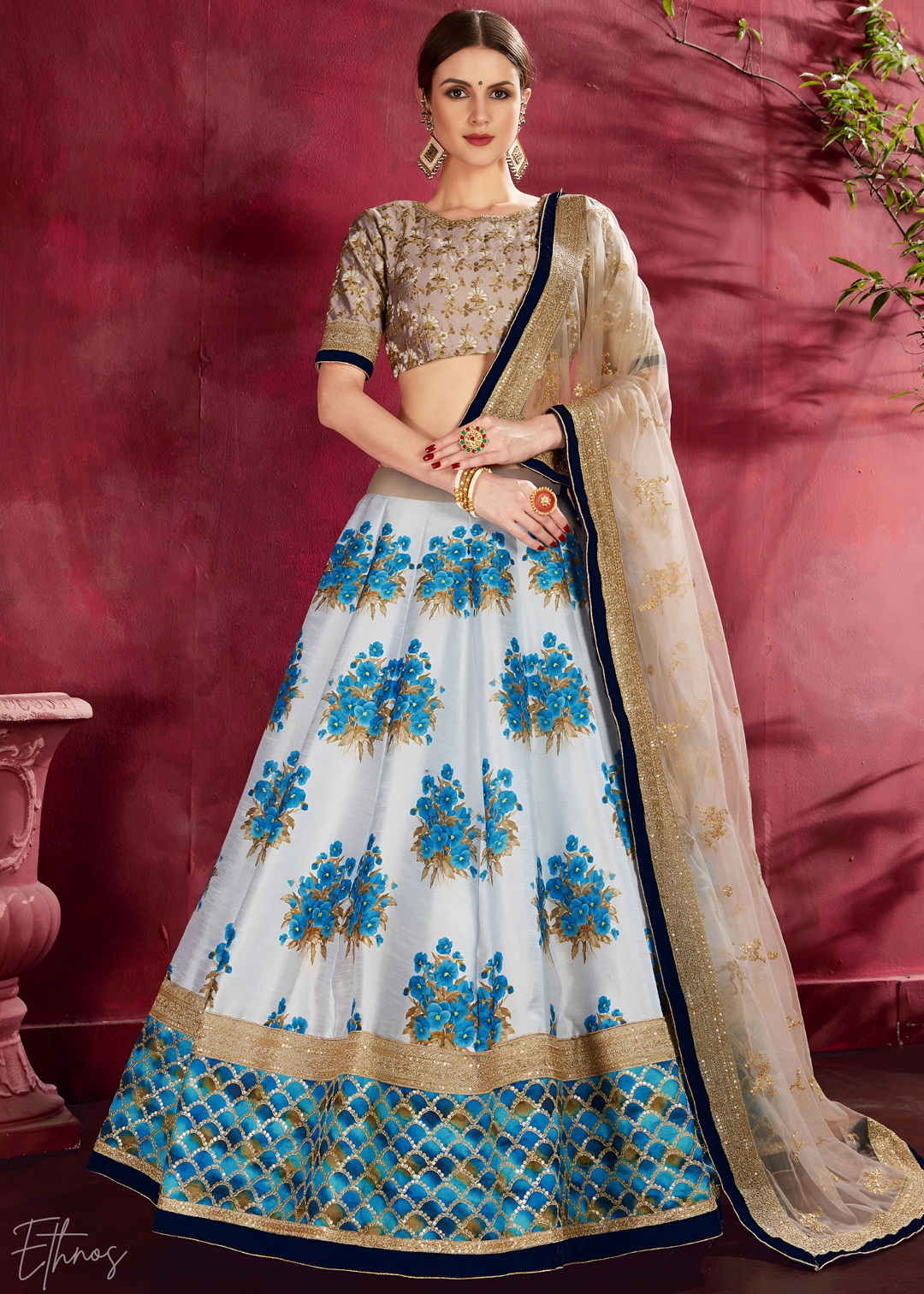 Arctic Azure Zari Bloom Silk Lehenga