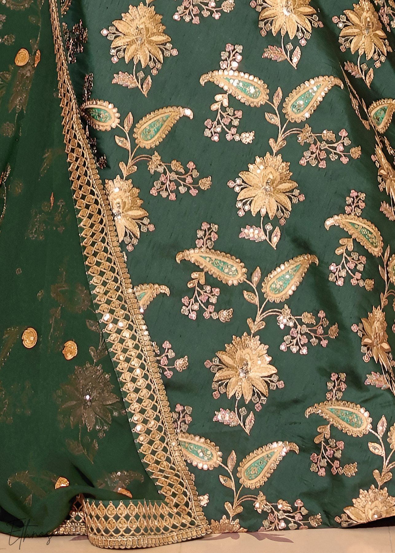Dark Green Silk Lehenga Choli