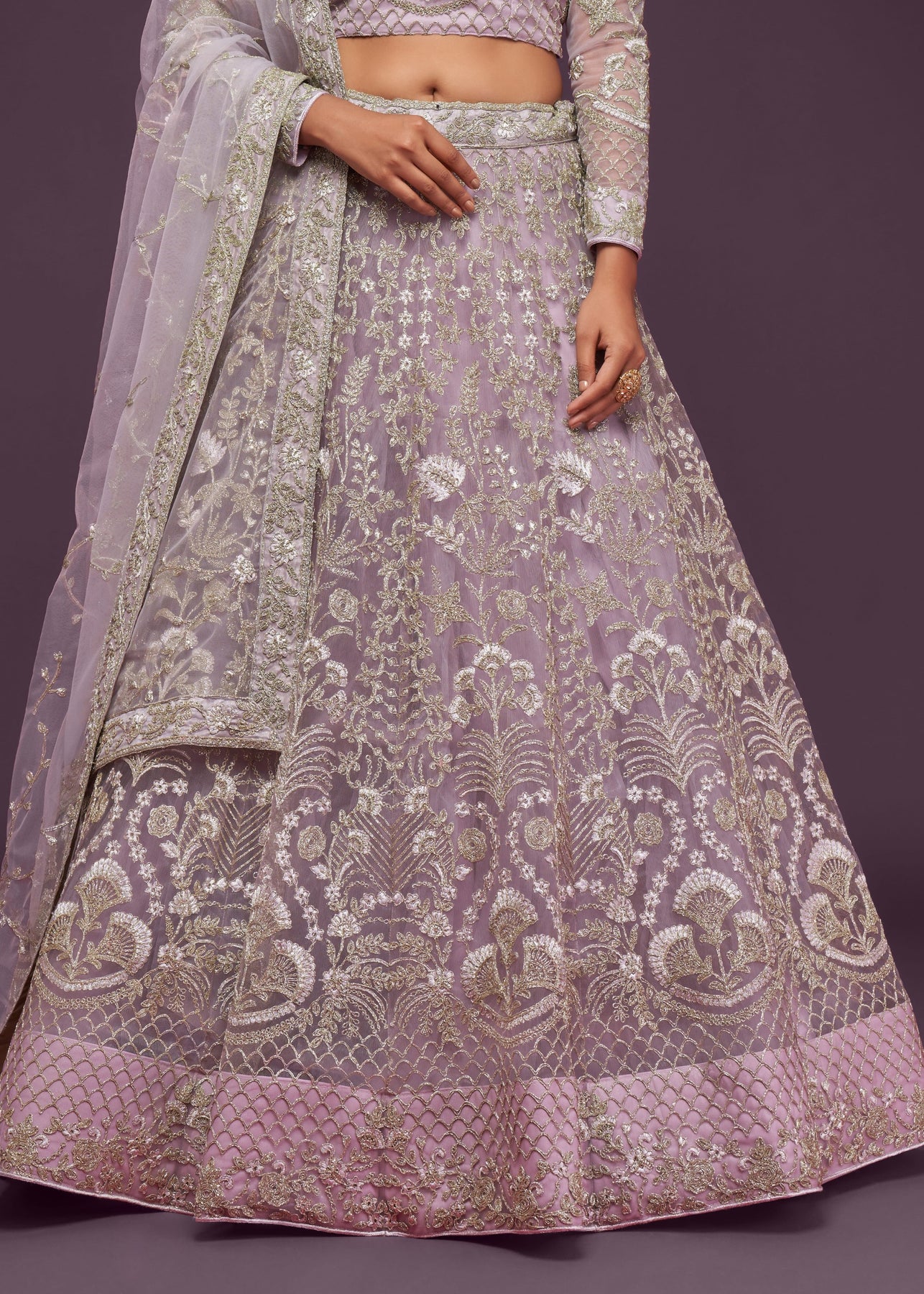 Dusky Orchid Soft Net Lehenga with Thread, Zari, Badla and Glitter Dori Embroidery Work
