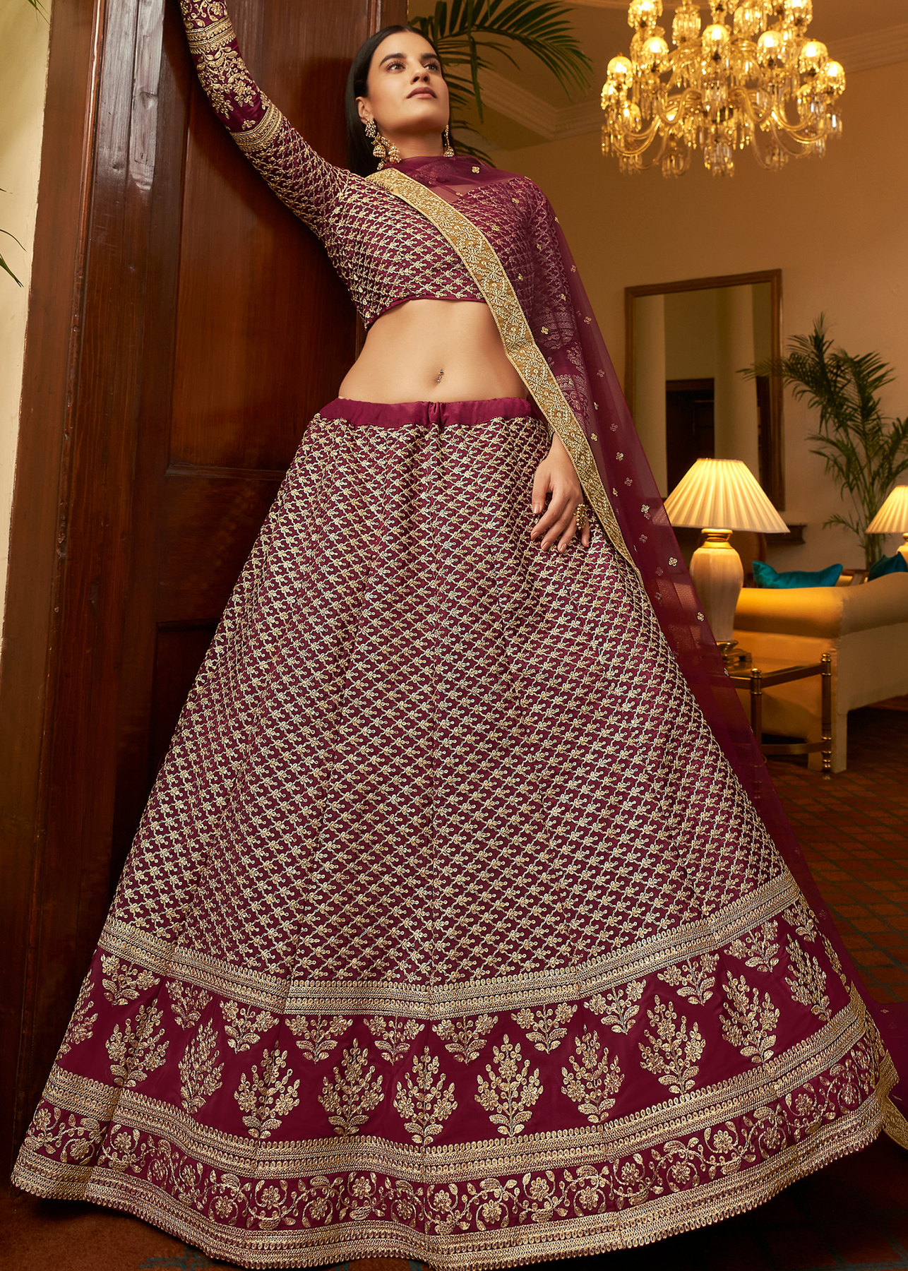 Maroon Red Crepe Lehenga Choli with Dori & Sequins work