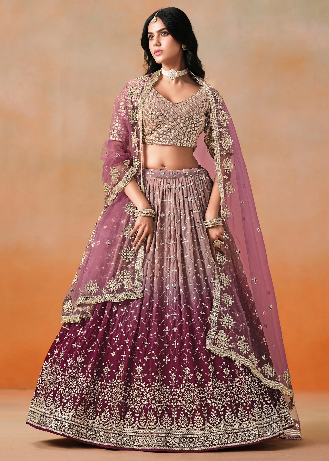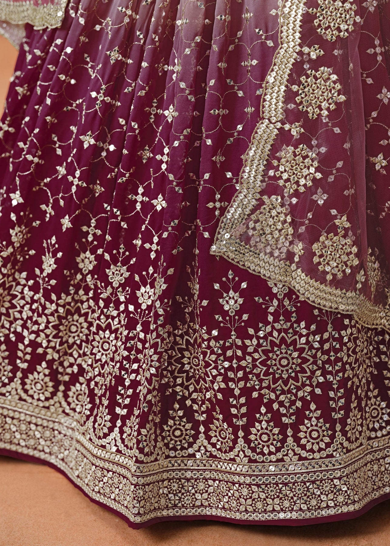 Maroon Sequins Zari Embroidered Work Georgette Lehenga