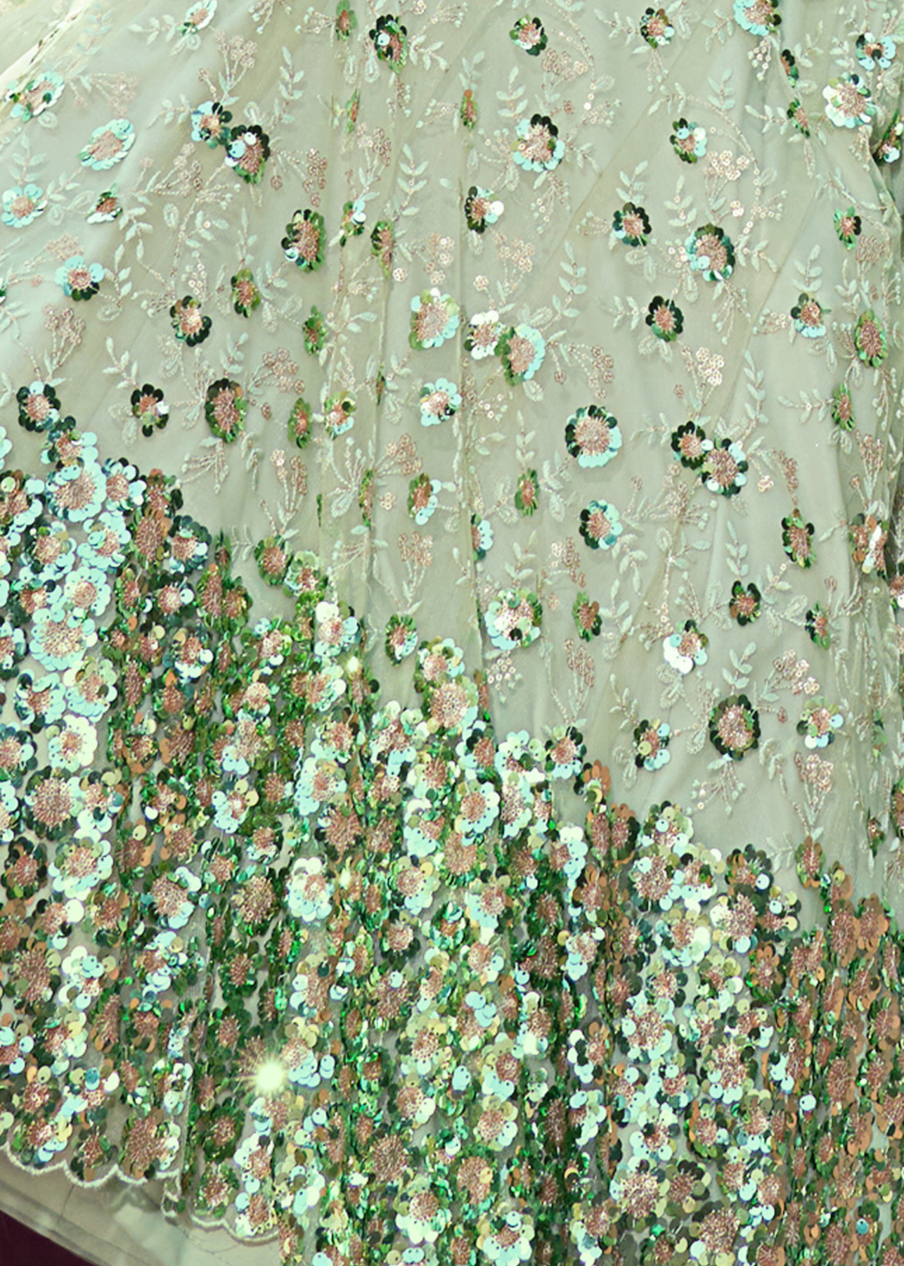 Mint Green Designer Soft Net Lehenga Choli with Sequins & Thread work
