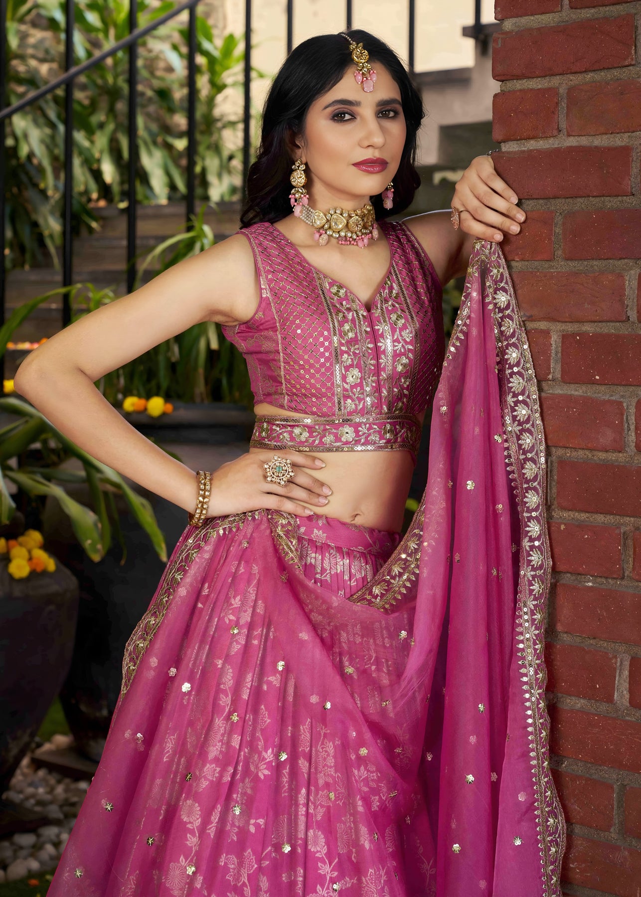 Pink Sequins and Zari Embroidery Work Silk Lehenga