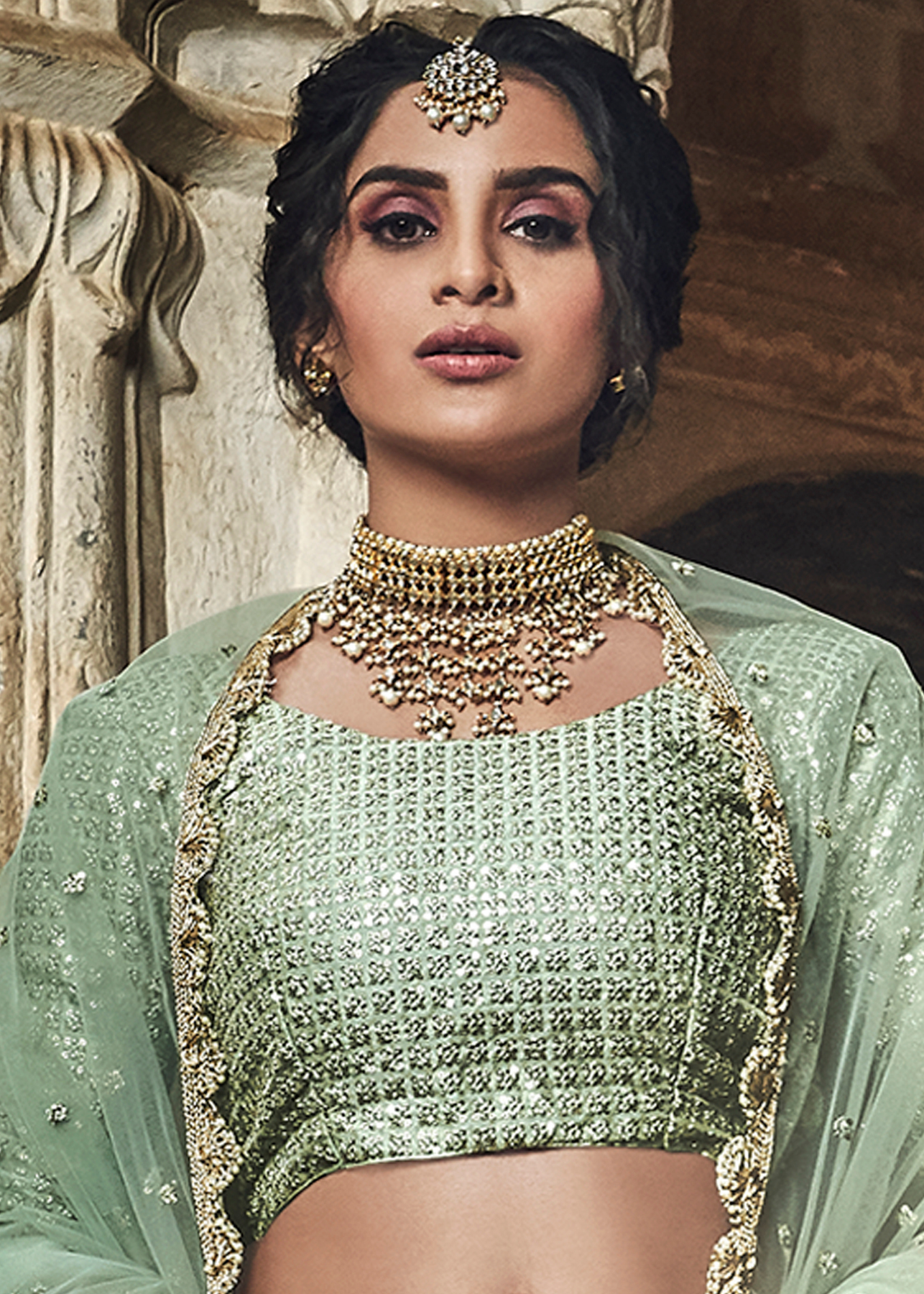 Sea Green Soft Net Lehenga with Sequins & Zari work