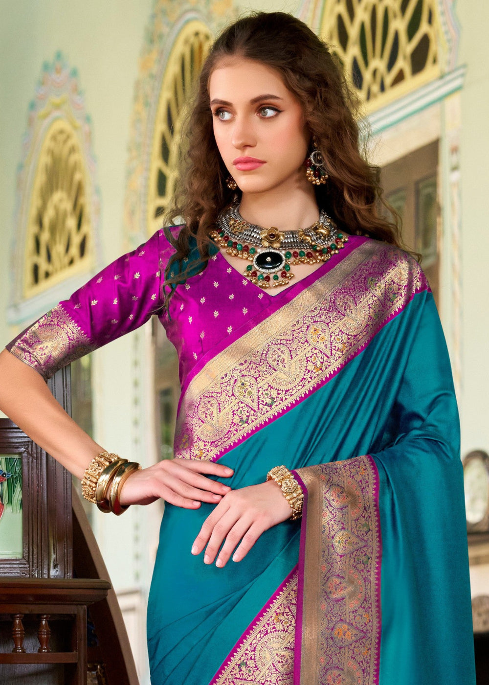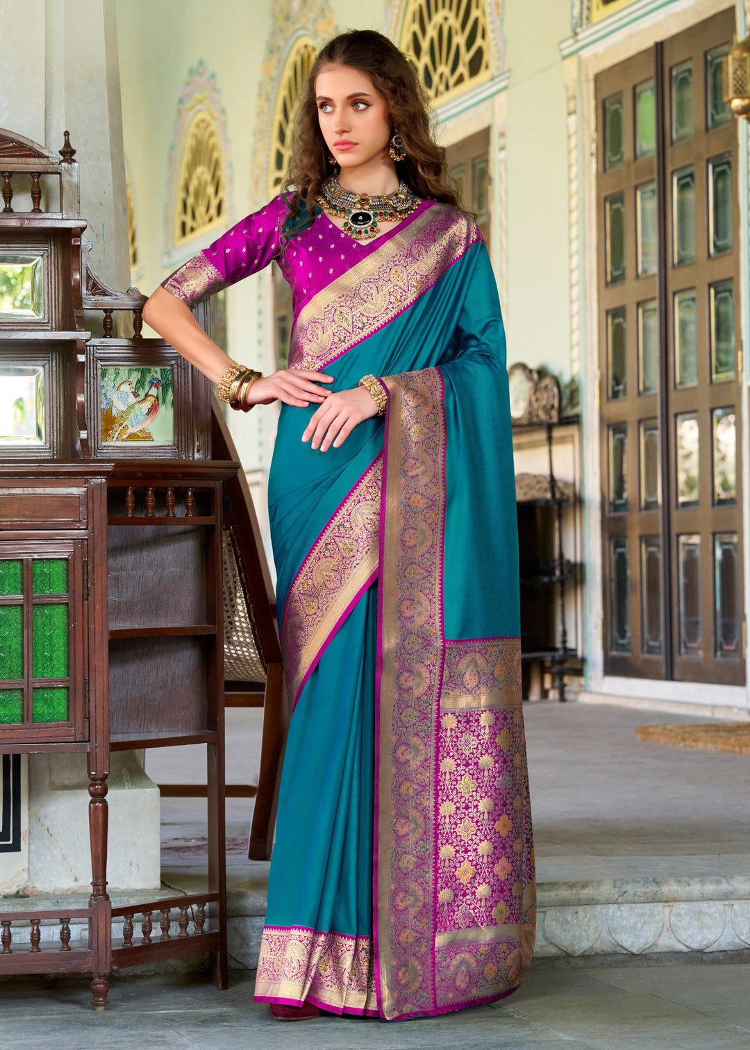 Dodger Blue Viscose Zari Tissue Silk Saree