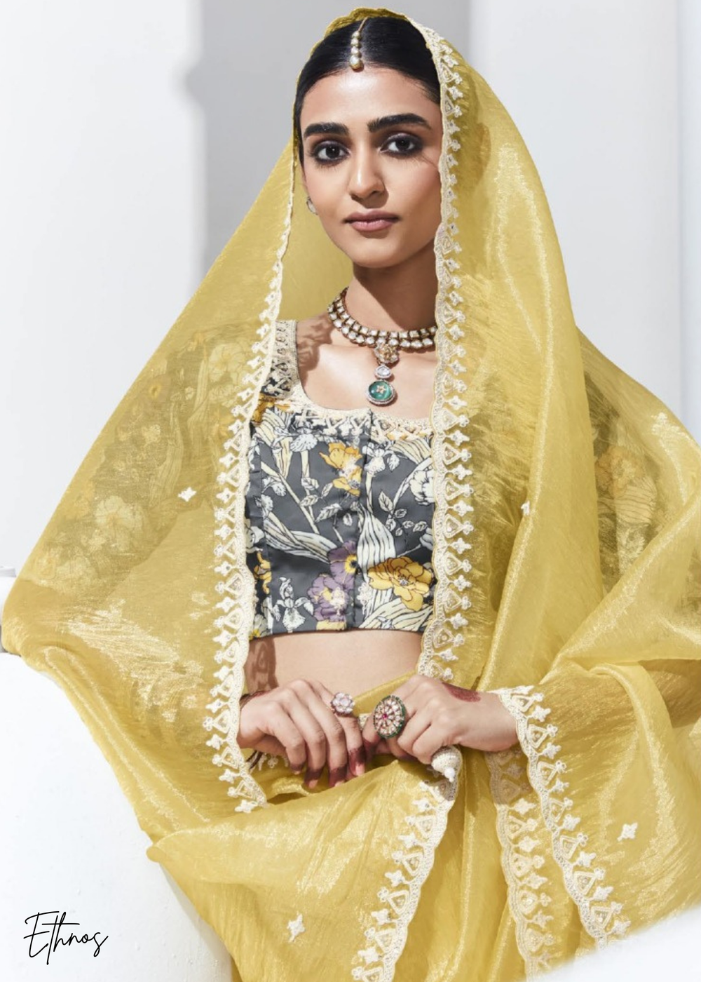 Vibrant Yellow Glass Tissue Organza Saree