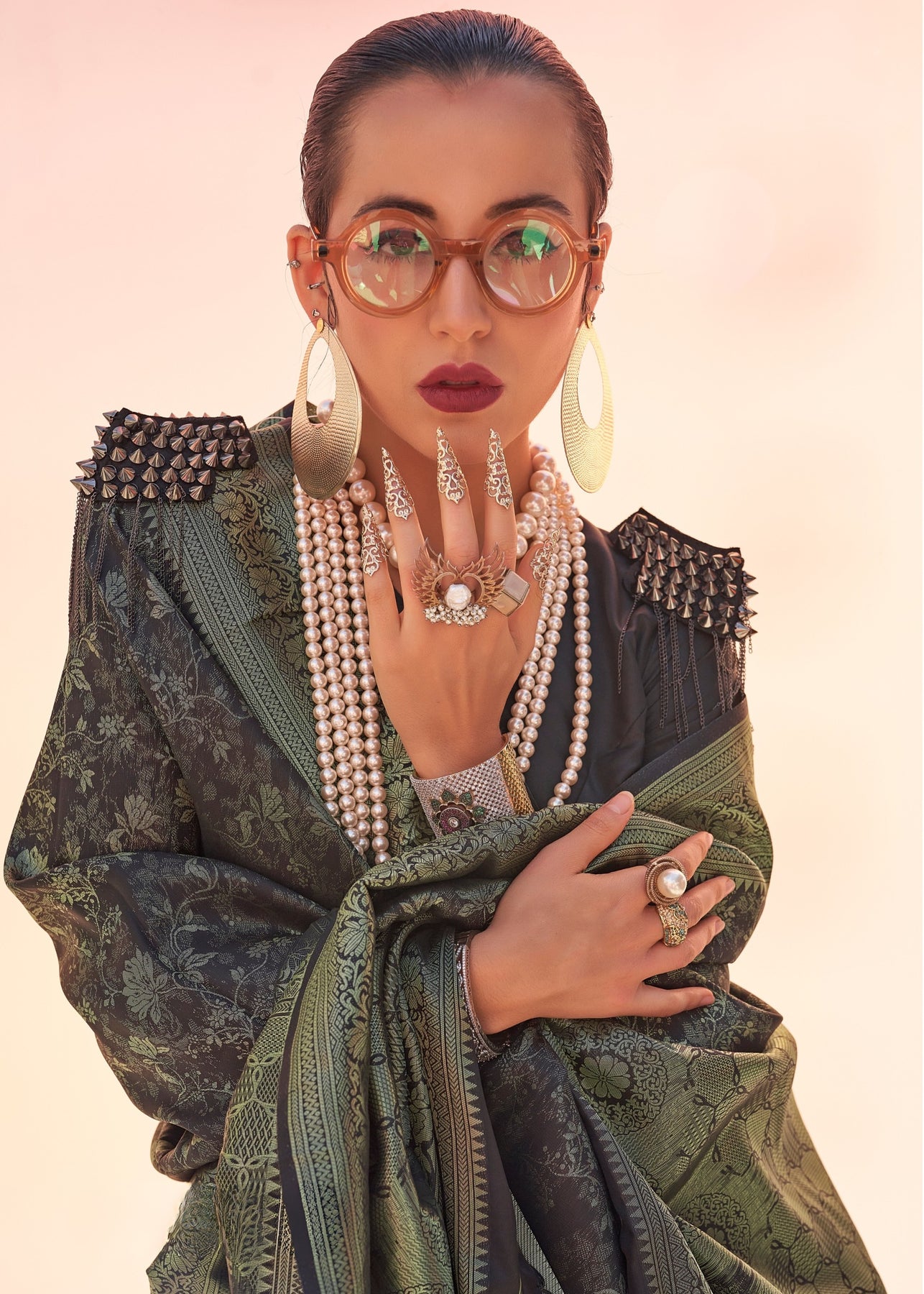 The Basil Green Handloom Weaving Saree is a testament to traditional Indian craftsmanship, blending cultural heritage with contemporary elegance. Handloom sarees are meticulously woven on manual looms, a practice deeply rooted in India's textile history. This artisanal method ensures each saree is unique, reflecting the weaver's skill and dedication.