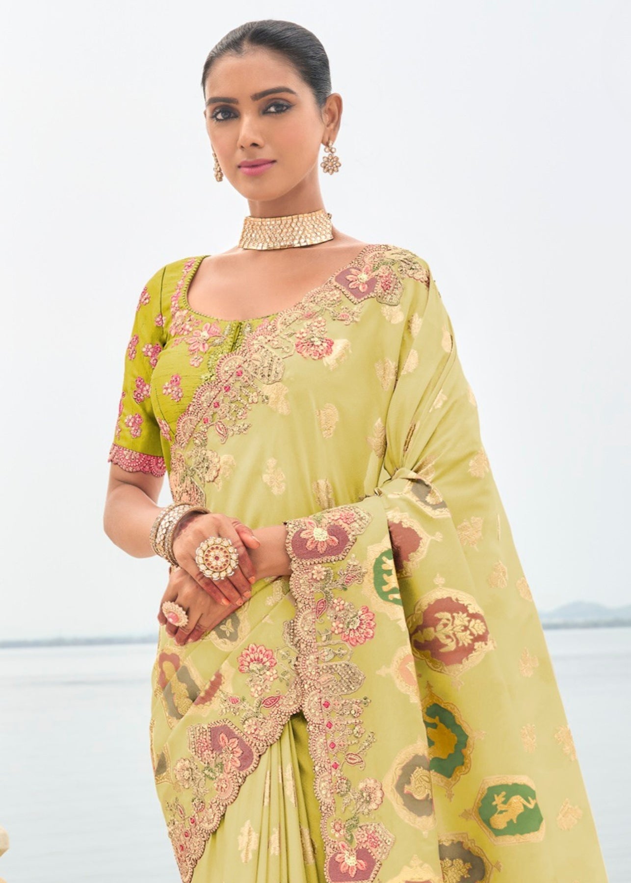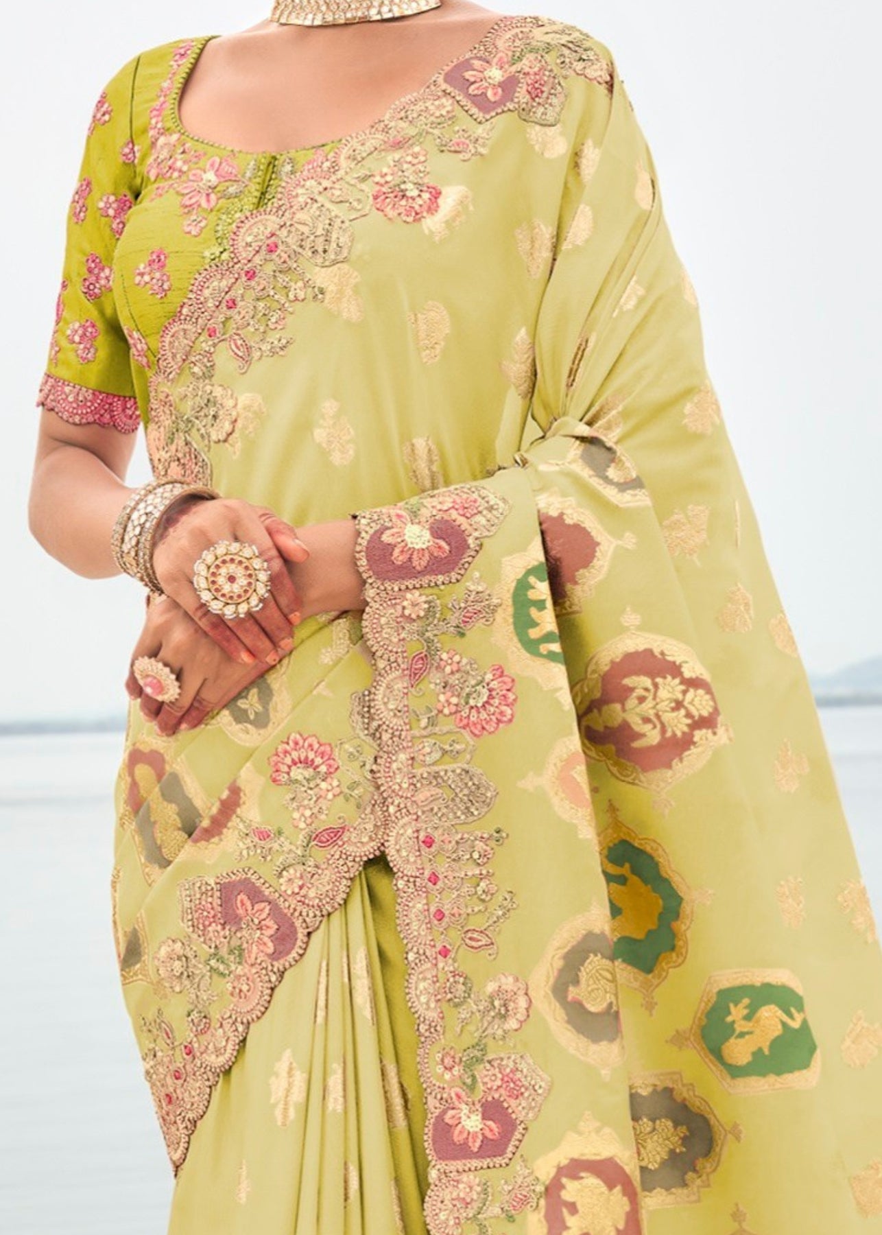 Canary Yellow Silk Saree With Embroidery Cut and Butti Work
