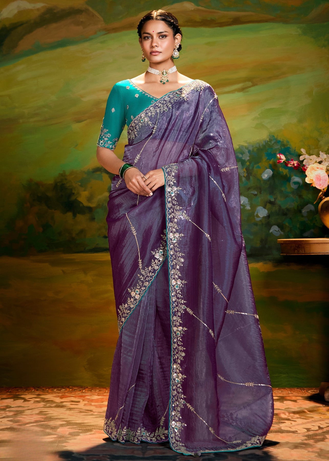 Eminence Purple Saree With Embroidery And Handwork Designer Cut Border