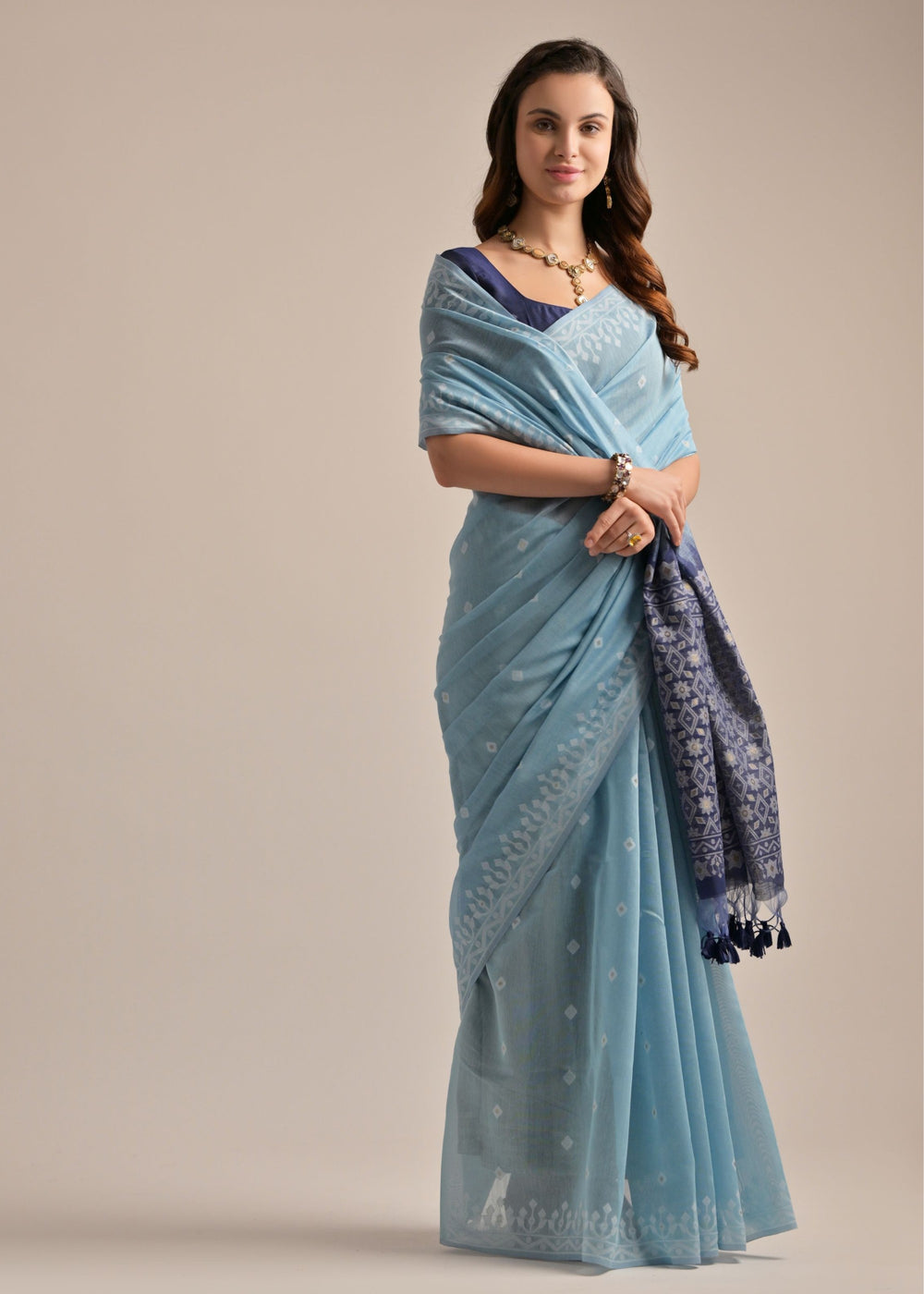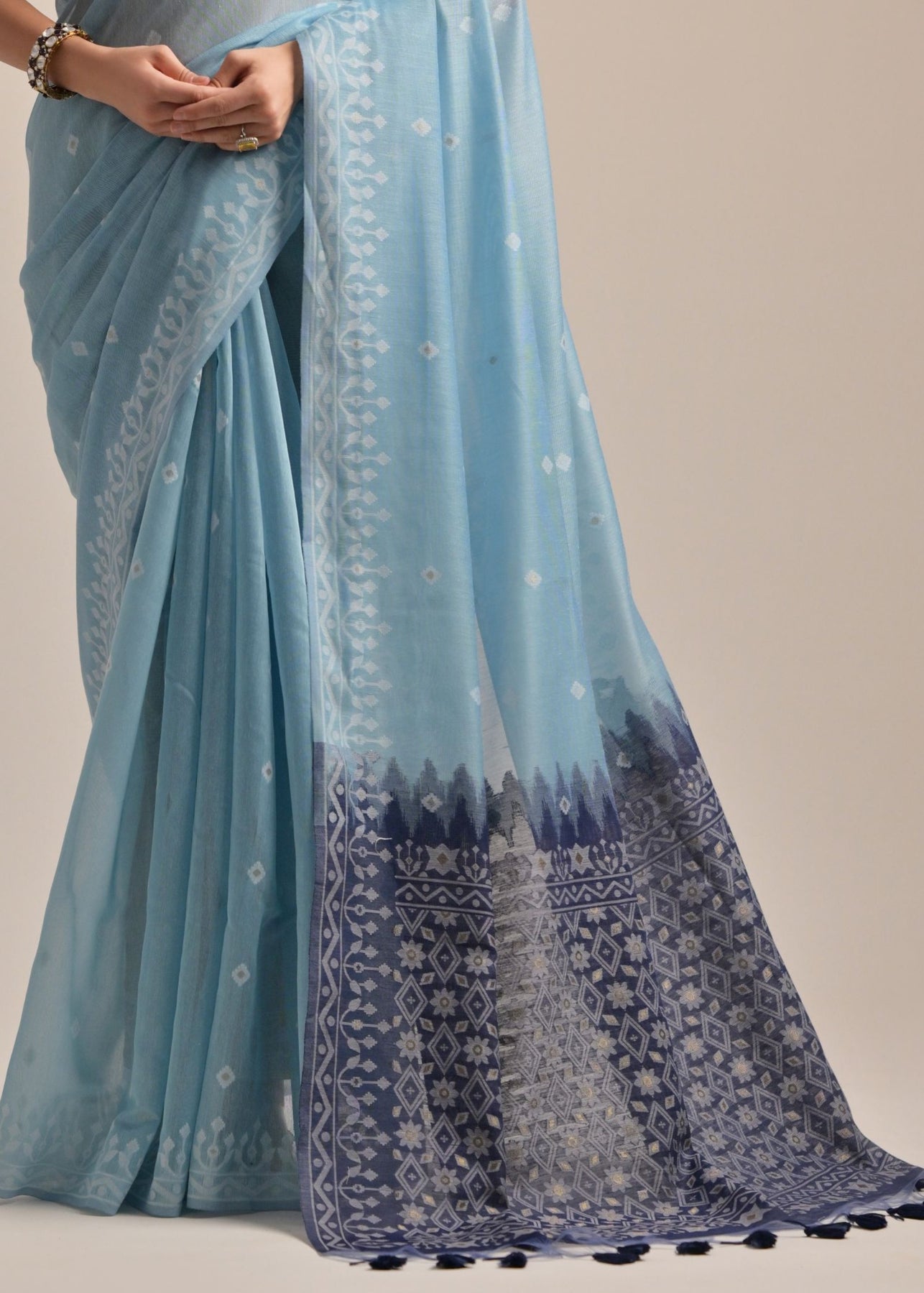 Elevate your ethnic wardrobe with the exquisite Firozi Thread Butti Lakhnawi Weaves Muga Cotton Saree, a masterpiece that beautifully marries traditional craftsmanship with timeless elegance. Crafted from premium Muga Cotton, this saree is lightweight yet rich in texture, offering both comfort and grandeur for any occasion.