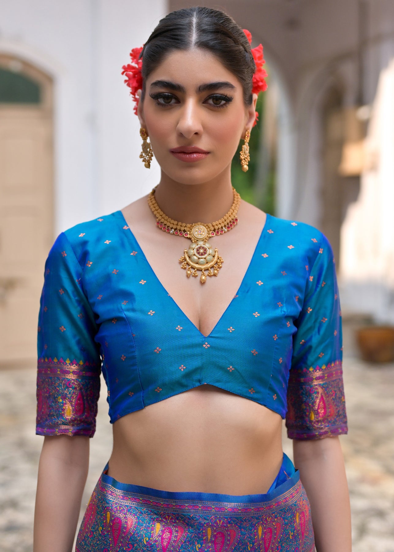 Firozi Thread Woven Jal & Flower Silk Saree With Thread Woven Pallu