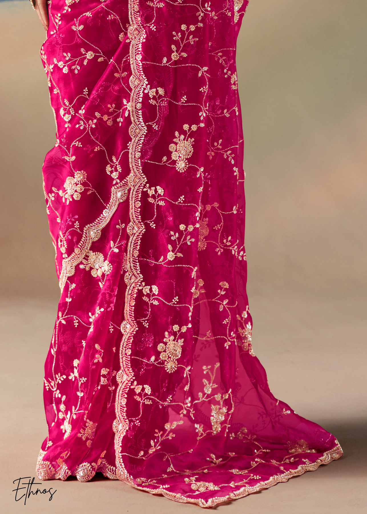Hot Pink Sequins Organza Saree