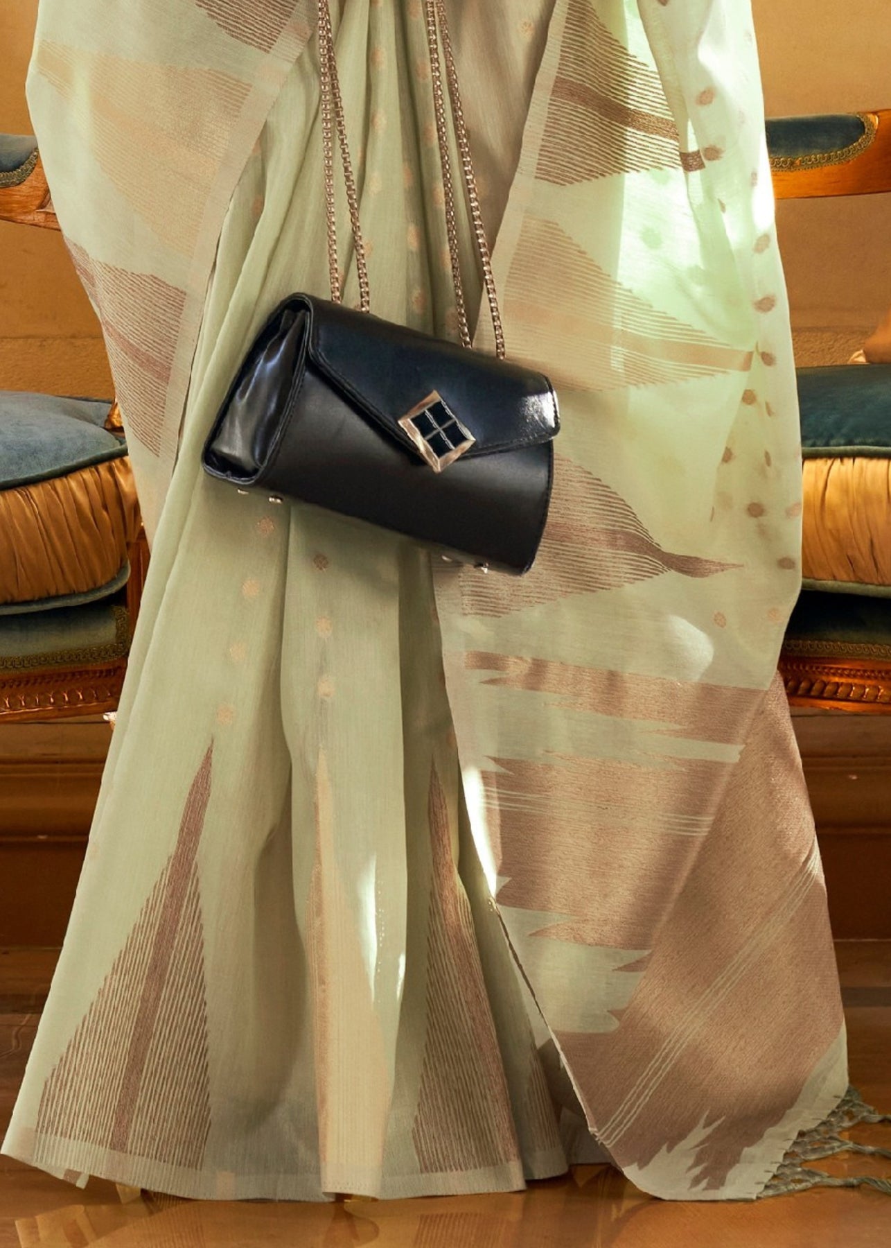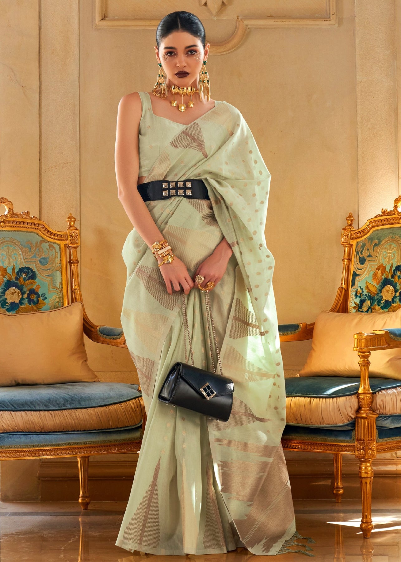 Mint Green Tissue and Khicha Zari Handloom Weaving Silk Saree