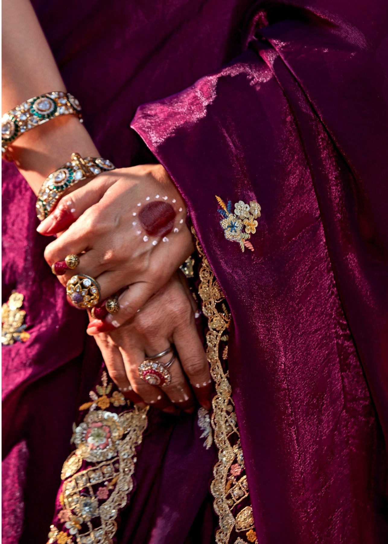 Mustard And Maroon Saree With Embroidery And Handwork Designer Cut Border