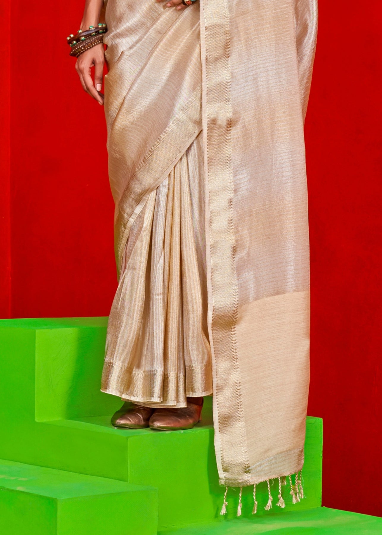 Off-White Pure Viscose Zari Tissue Saree
