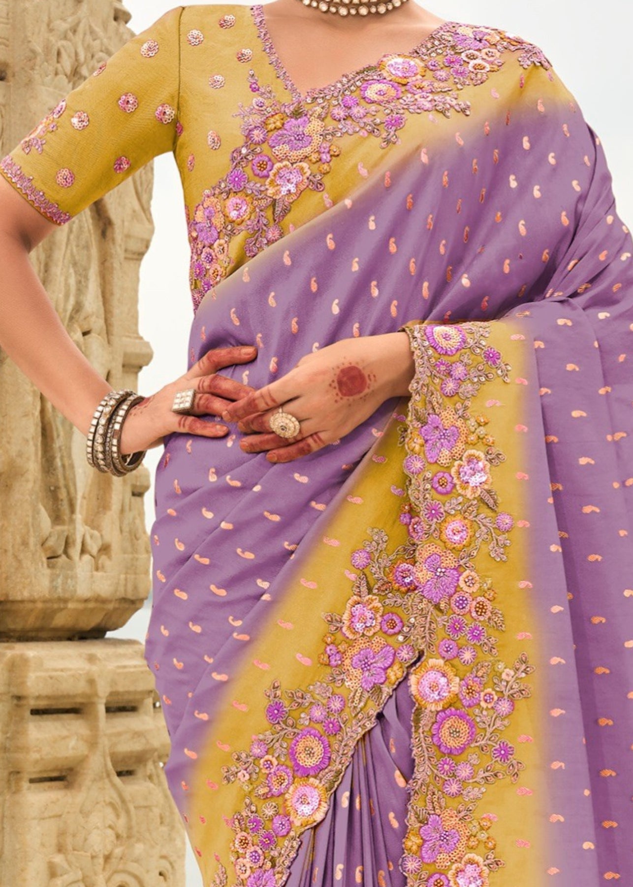 Orchid Silk Saree With Embroidery Cut and Butti Work