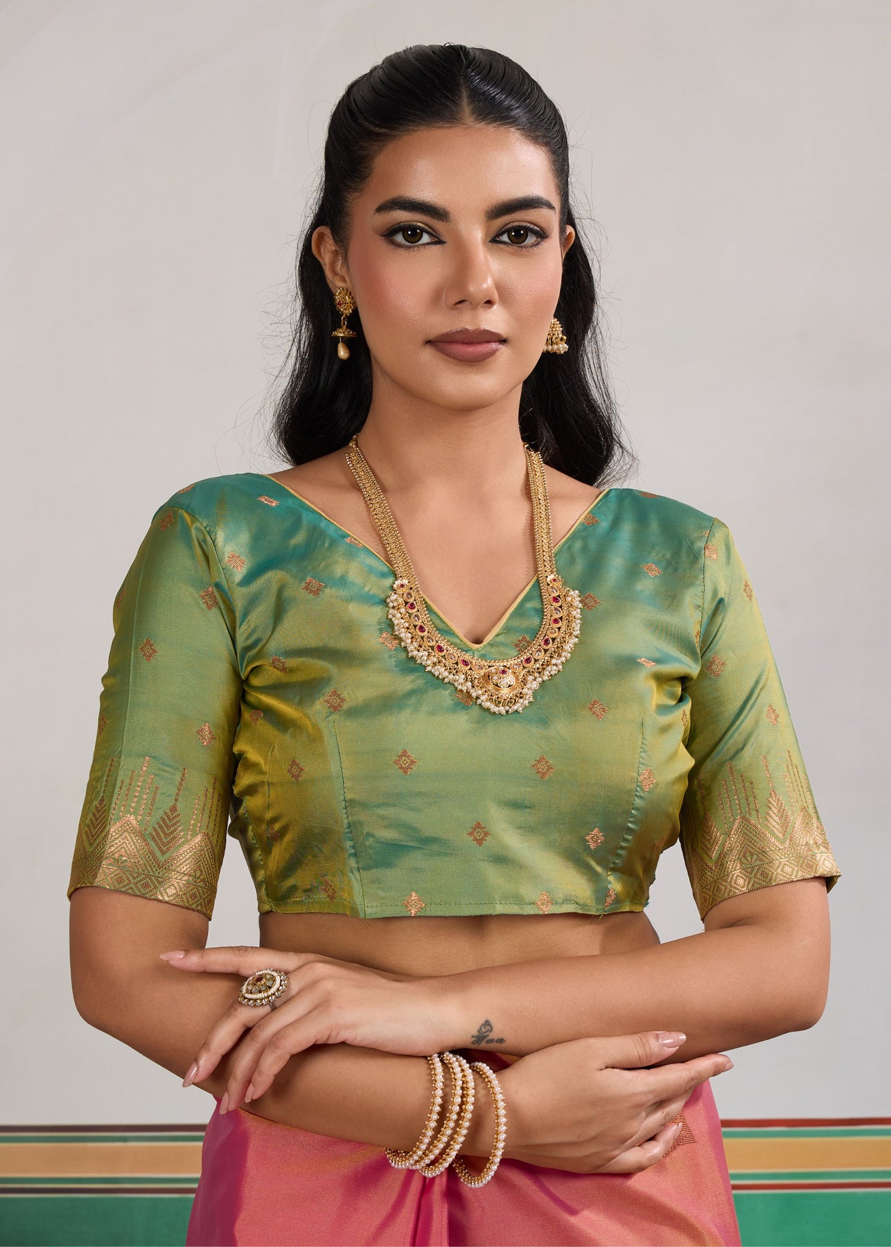 This Rani Pink Satin Silk Saree is a graceful and opulent piece crafted for festive gatherings, weddings, and special occasions. Its vivid hue and refined embellishments bring together tradition and modern elegance.