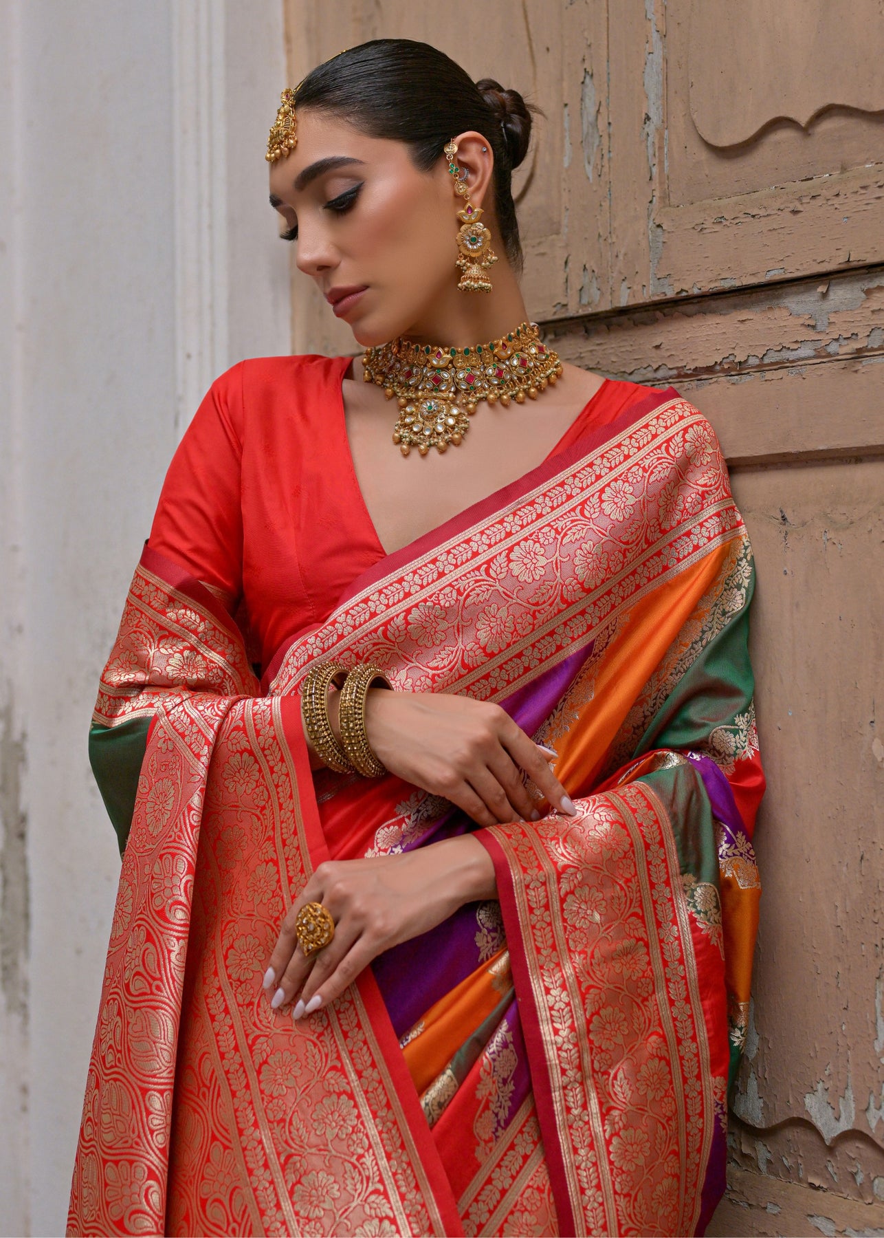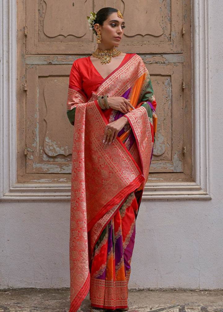 Red Leriya Zari Woven Saree With Contrast Pallu
