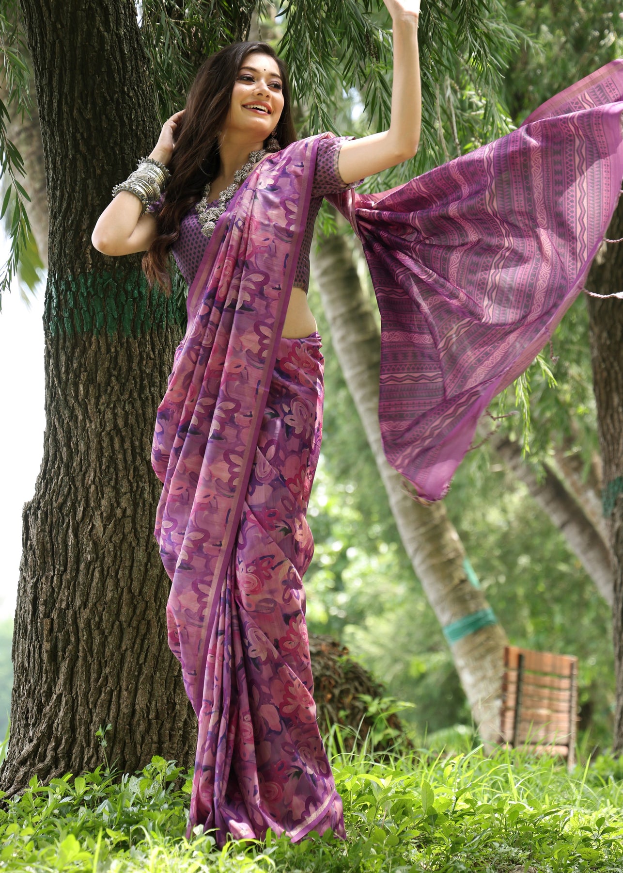 The saree features a beautifully coordinated printed pallu that adds an artistic flair to your ensemble. Lightweight and breathable, it's ideal for festive occasions, weddings, or even graceful everyday wear. Pair it with statement jewelry and a matching blouse to complete your elegant look.