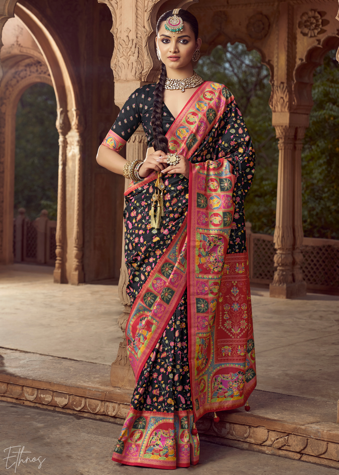 Black Floral Silk Saree