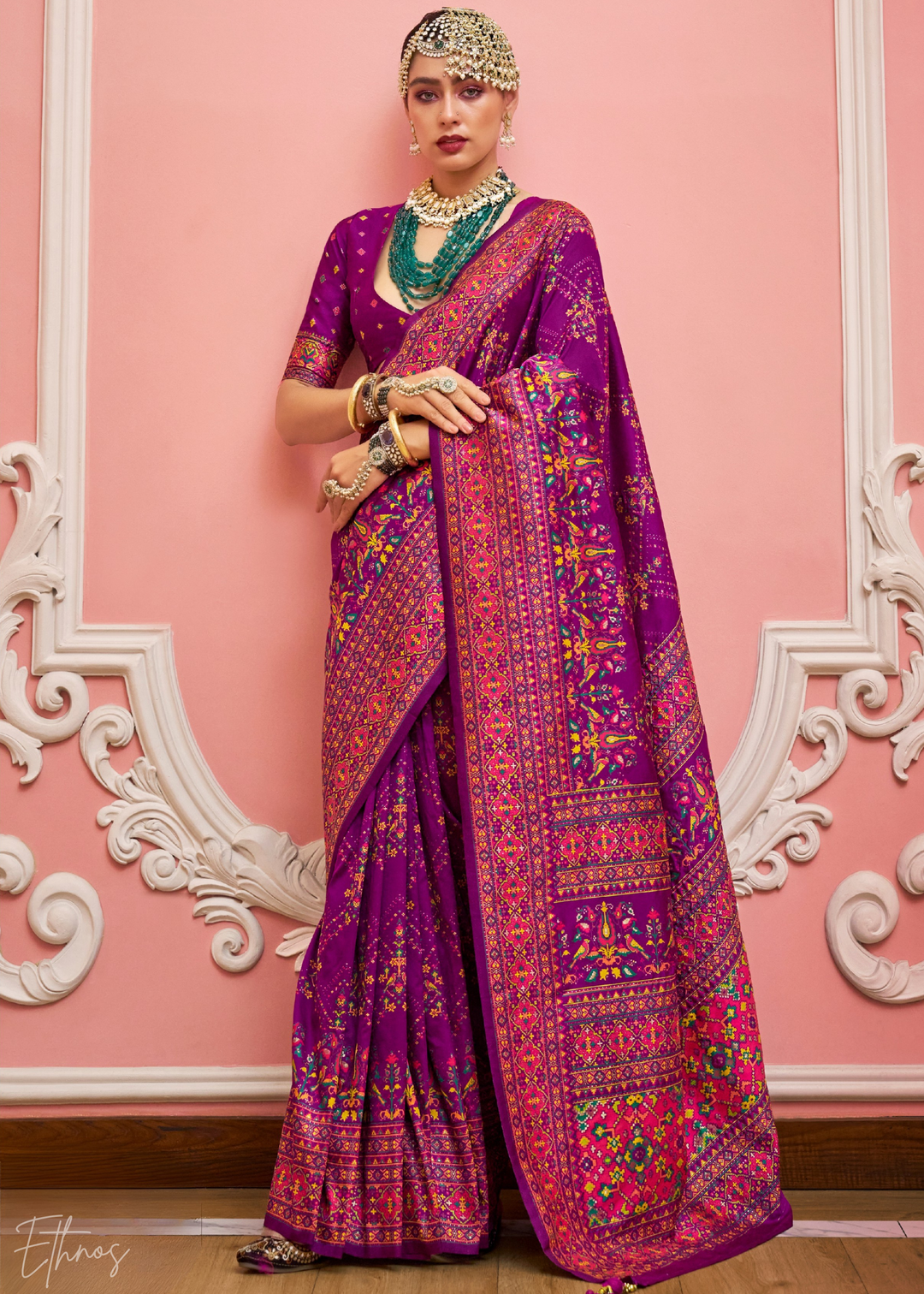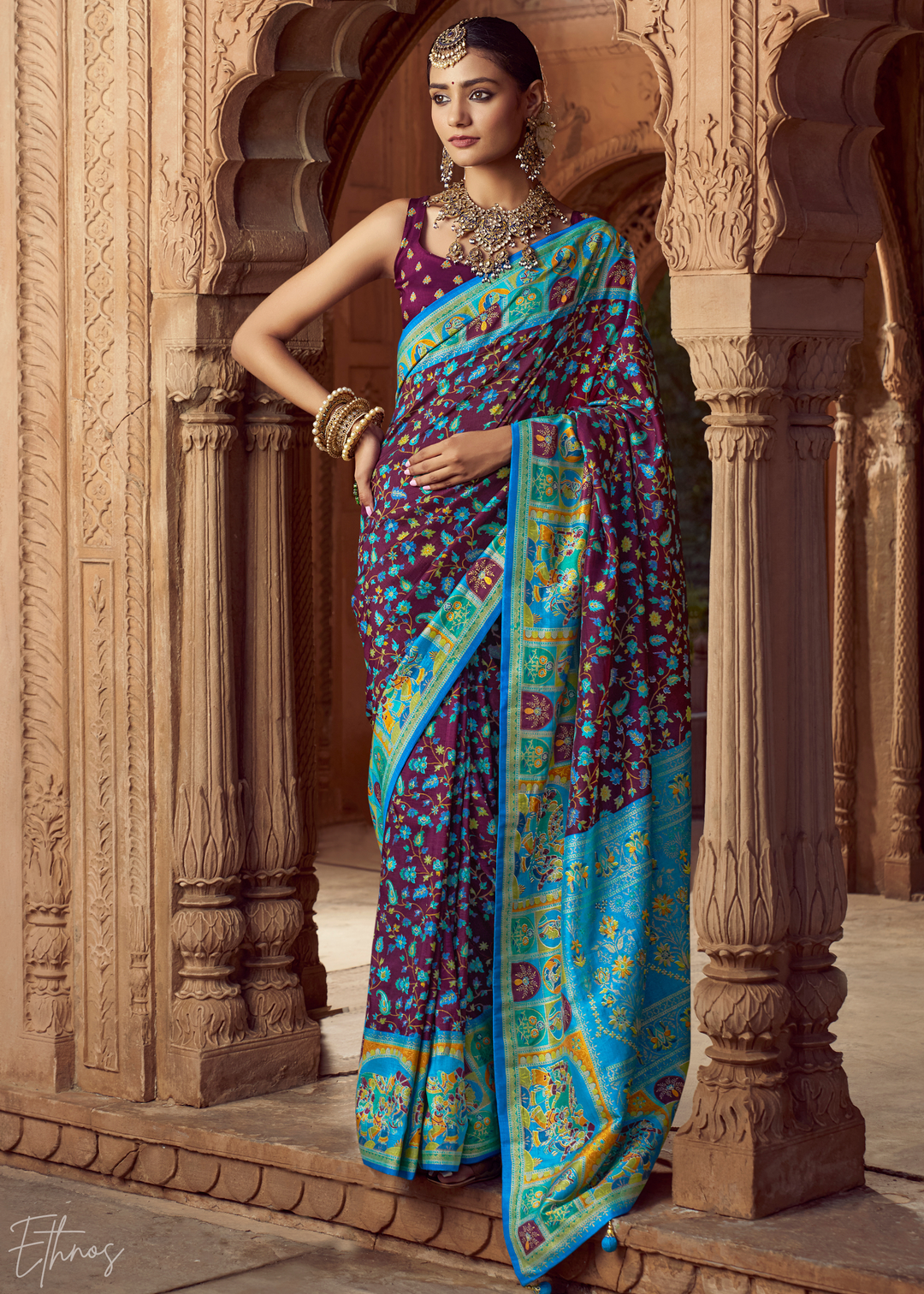 Magenta Kashmiri Silk Saree