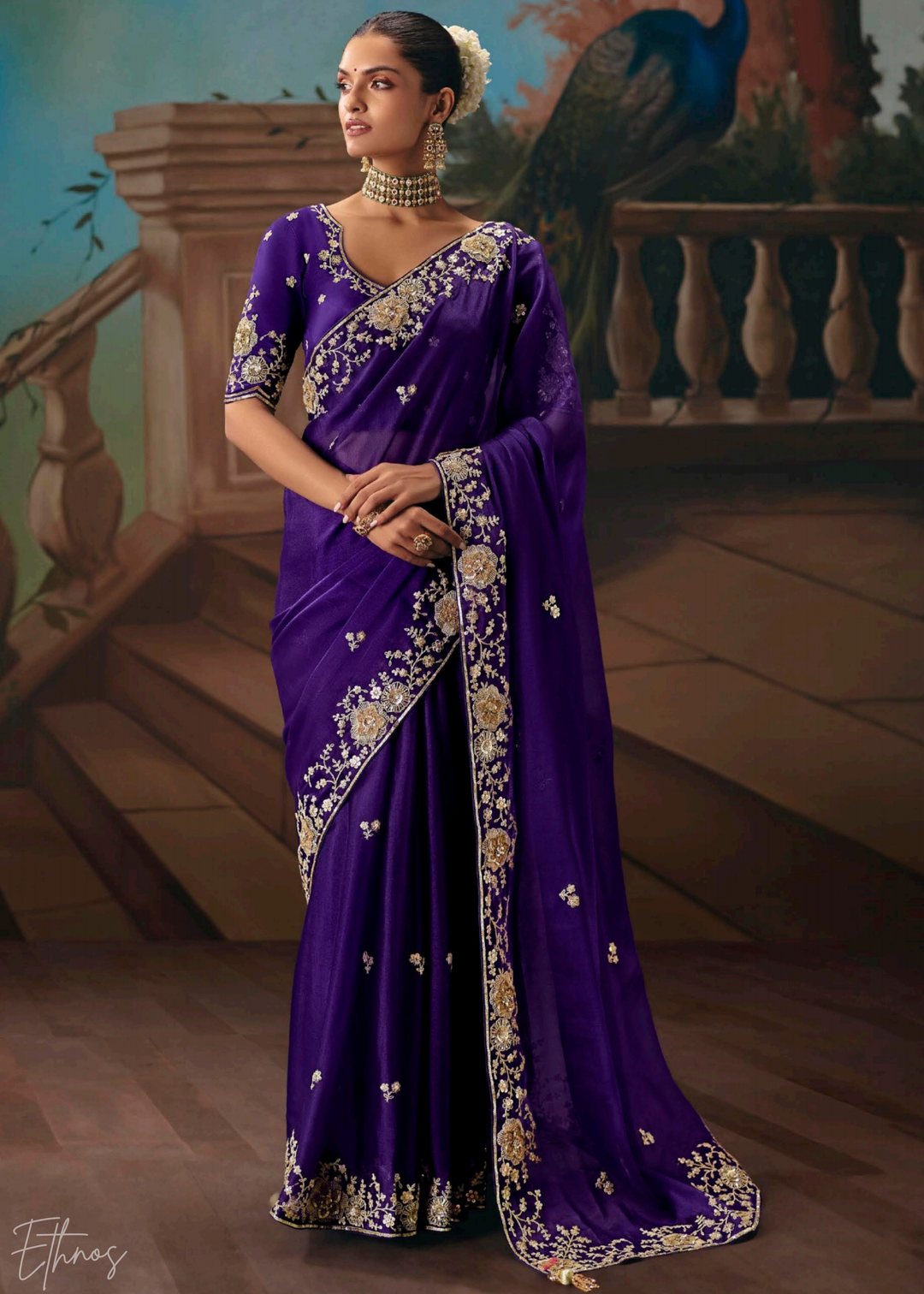 Purple Floral Silk Saree