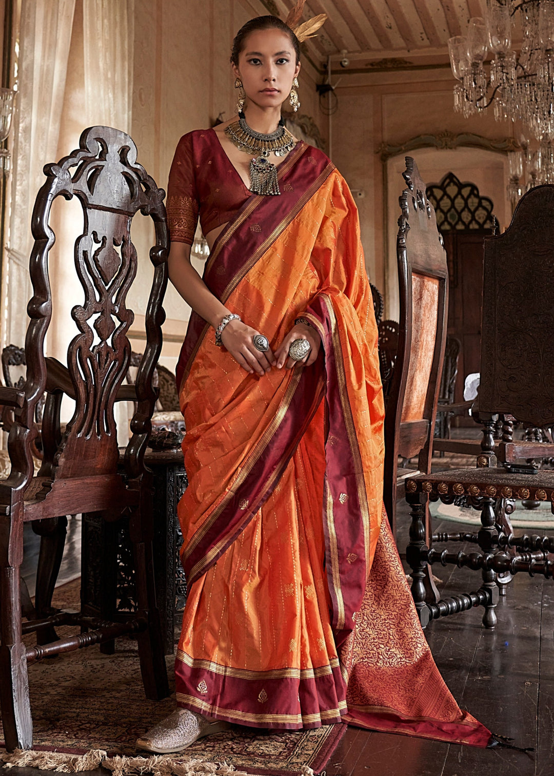 Orange Pure Fancy Saree with Hand Worked Border