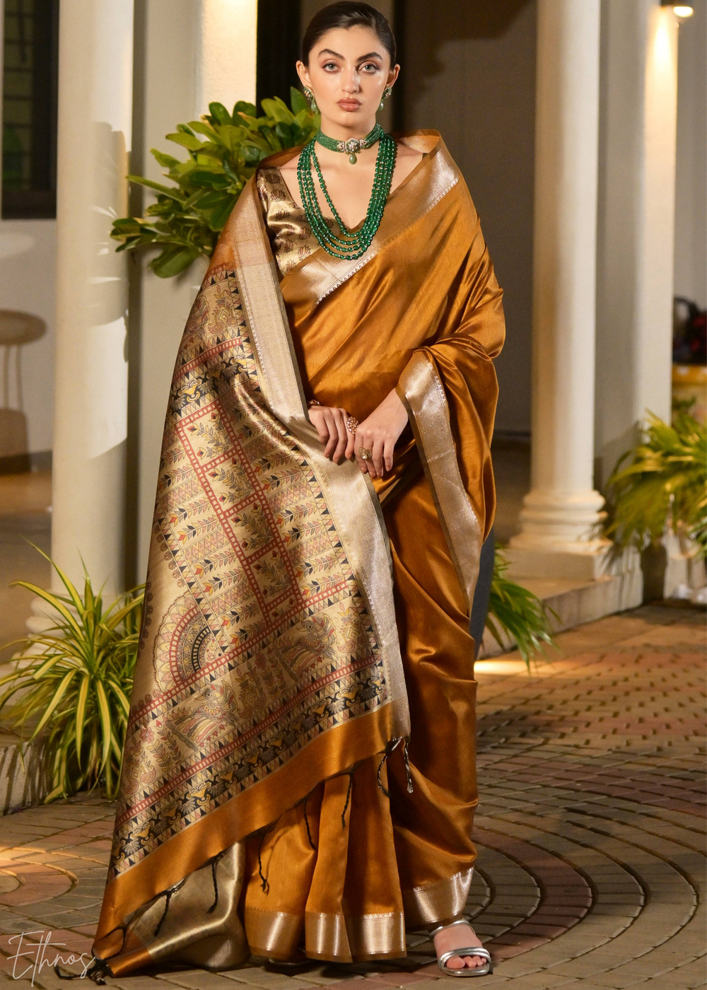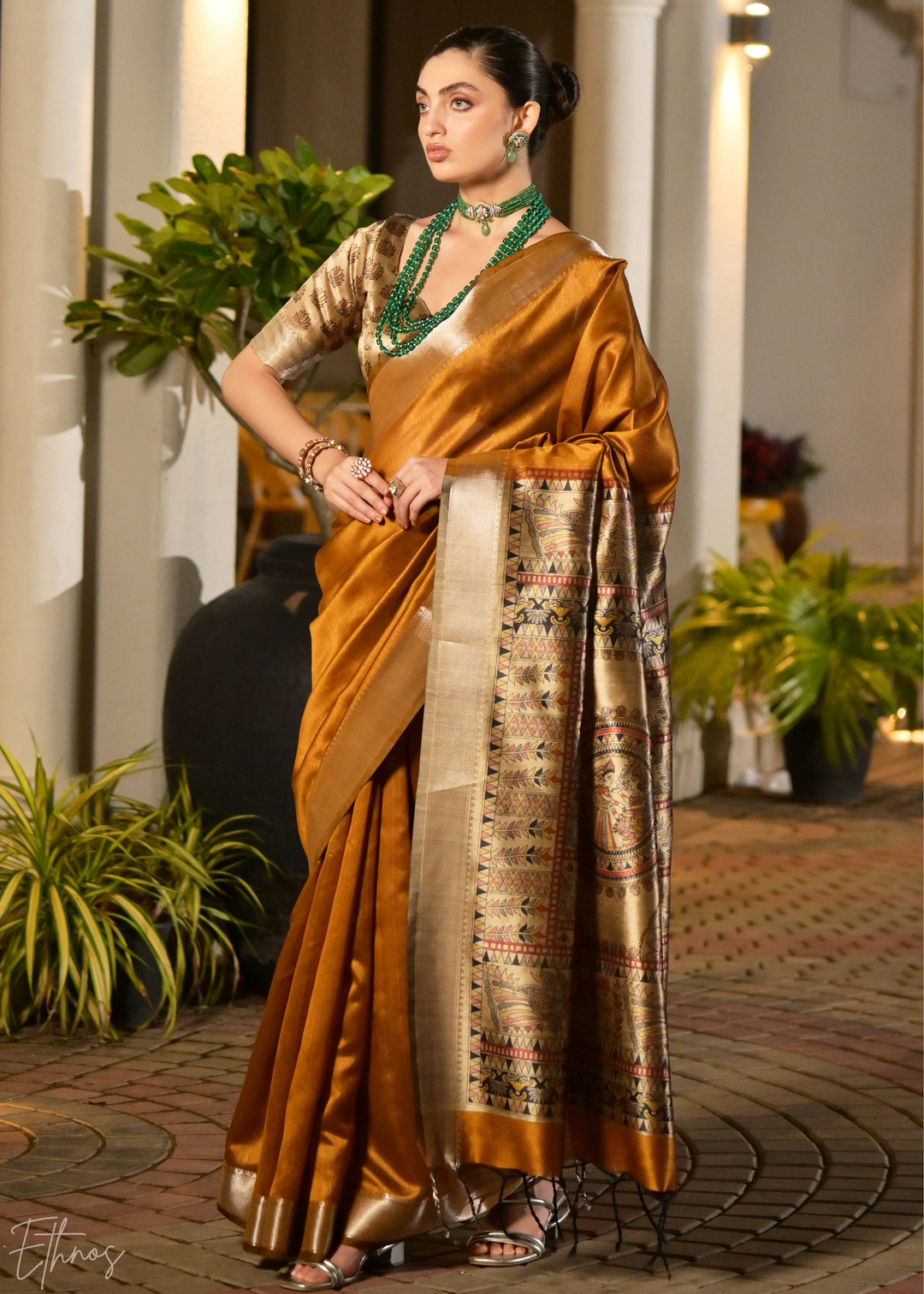 Bronze Zari Tussar Silk Saree