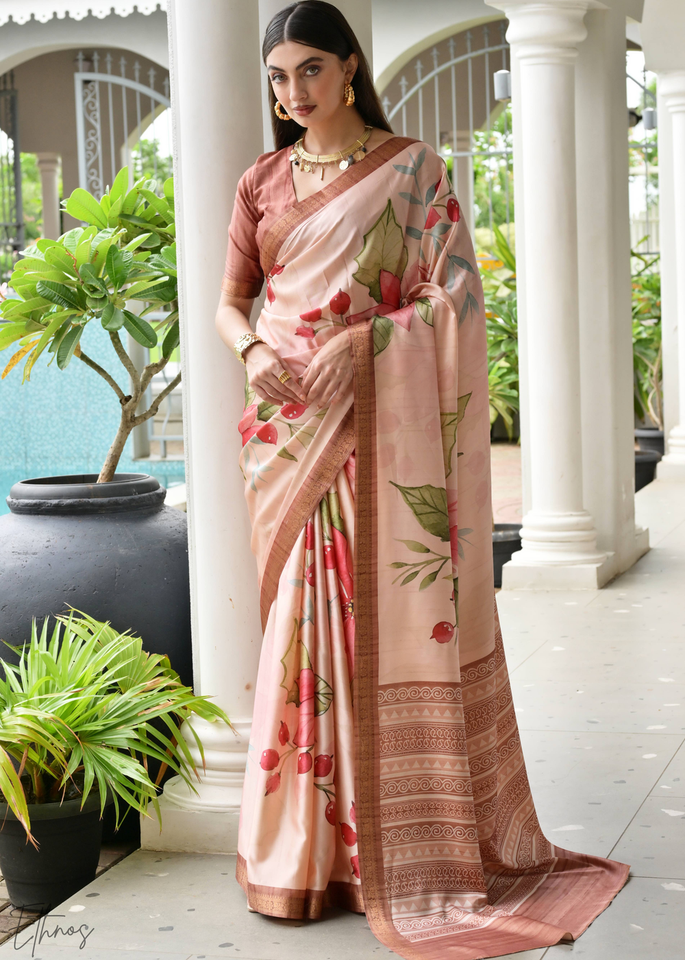 Coral Pink Kashmiri Silk Saree