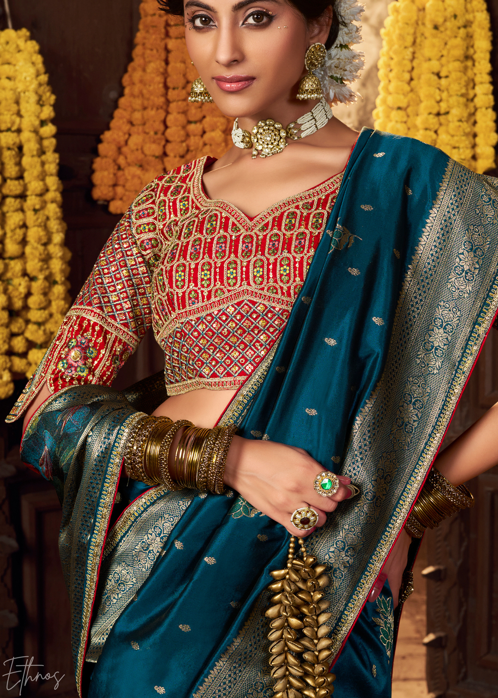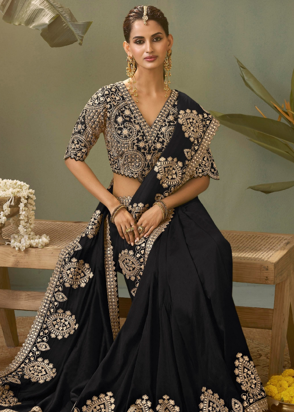 Midnight Black with Rich Multicolour Floral Weave Saree