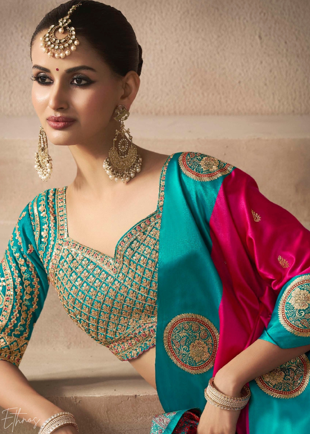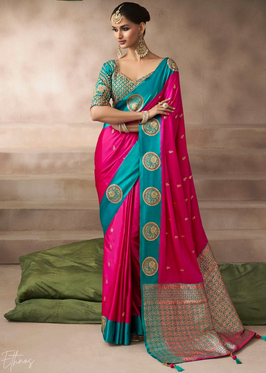 Fuchsia Pink Gota Patti Bamber Silk Saree