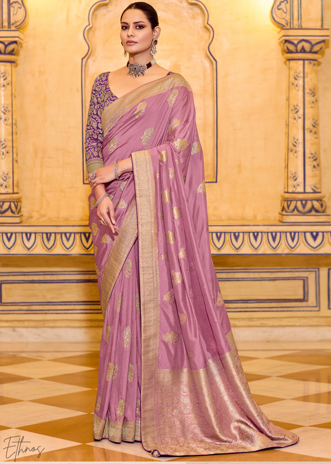 Soft Blush Pink with Multicolour Kashmiri Floral Weaving Saree