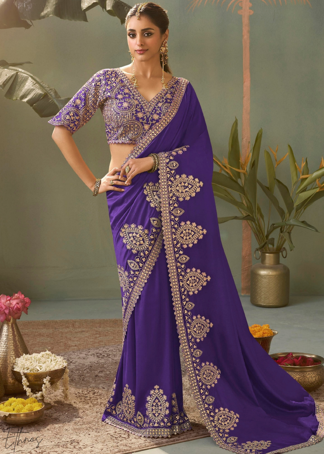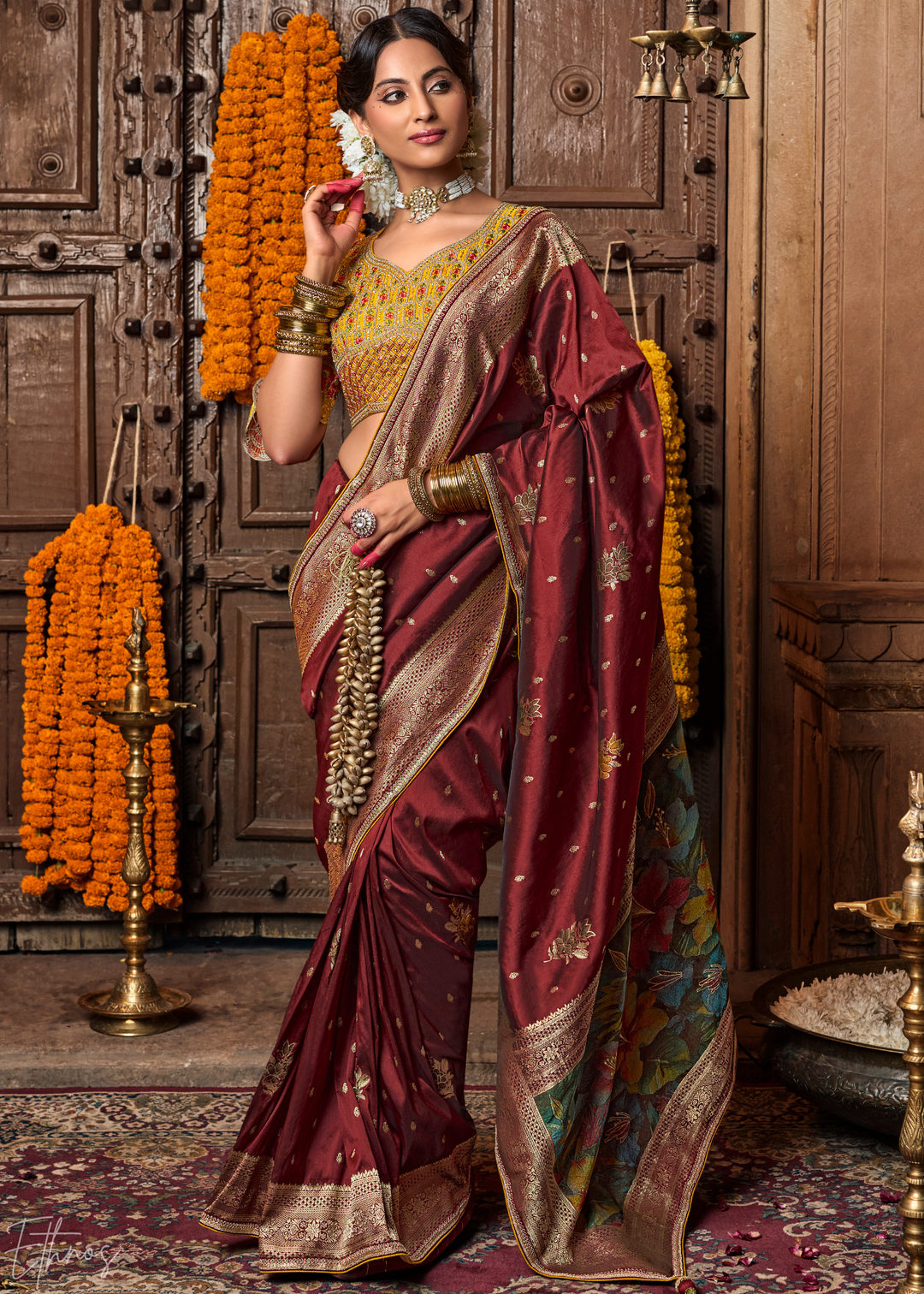 Aubergine Purple with Multicolour Kashmiri Floral Weave Saree
