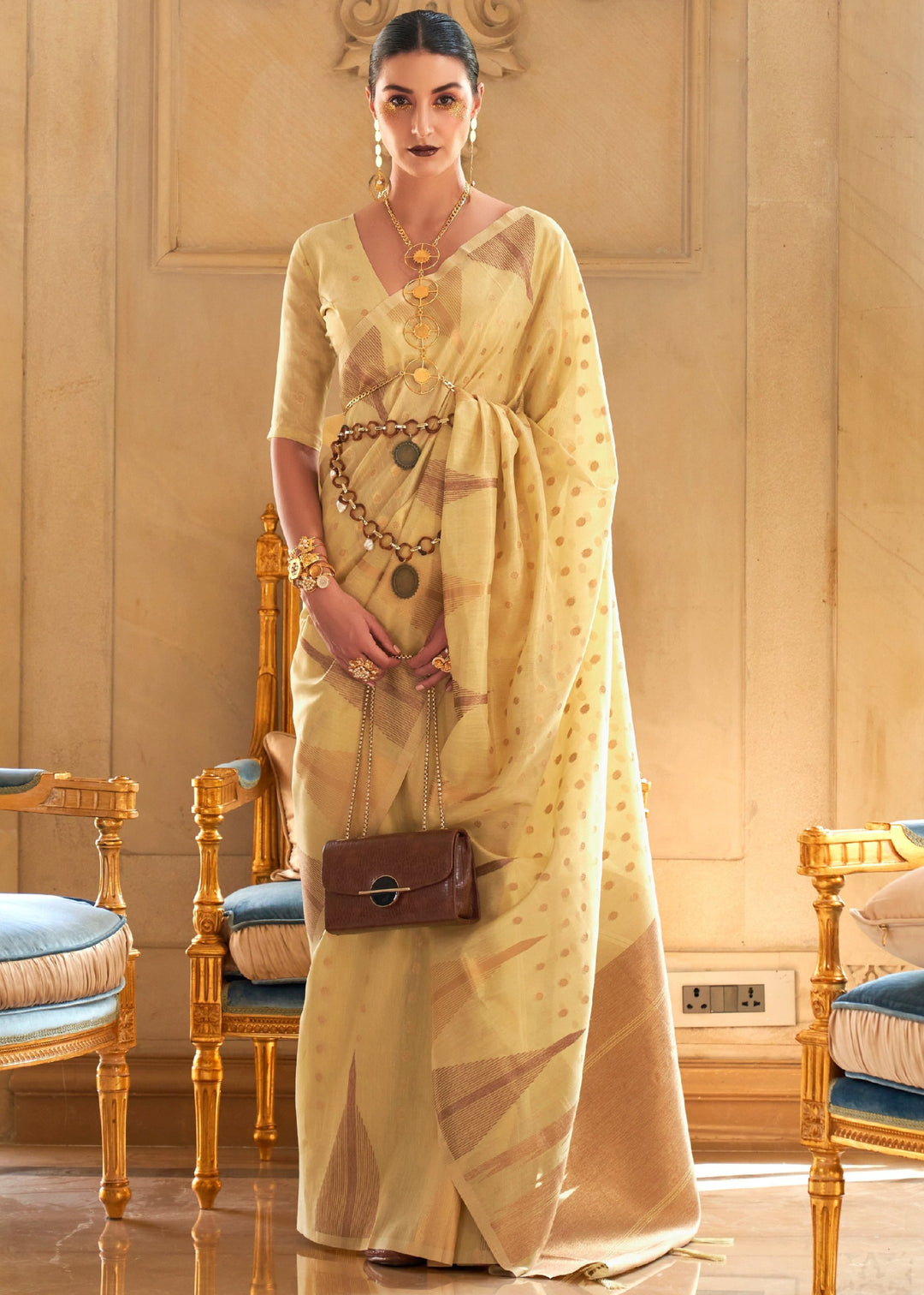 Banana Yellow Tissue and Khicha Zari Handloom Weaving Silk Saree