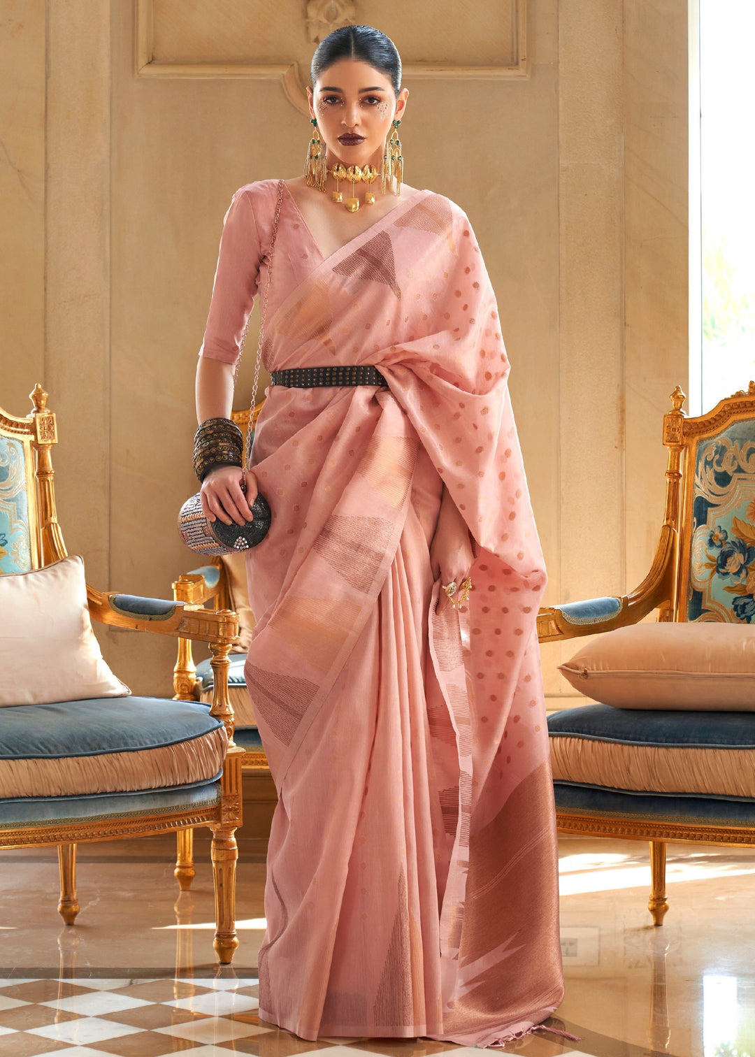 Pastel Pink Tissue and Khicha Zari Handloom Weaving Silk Saree