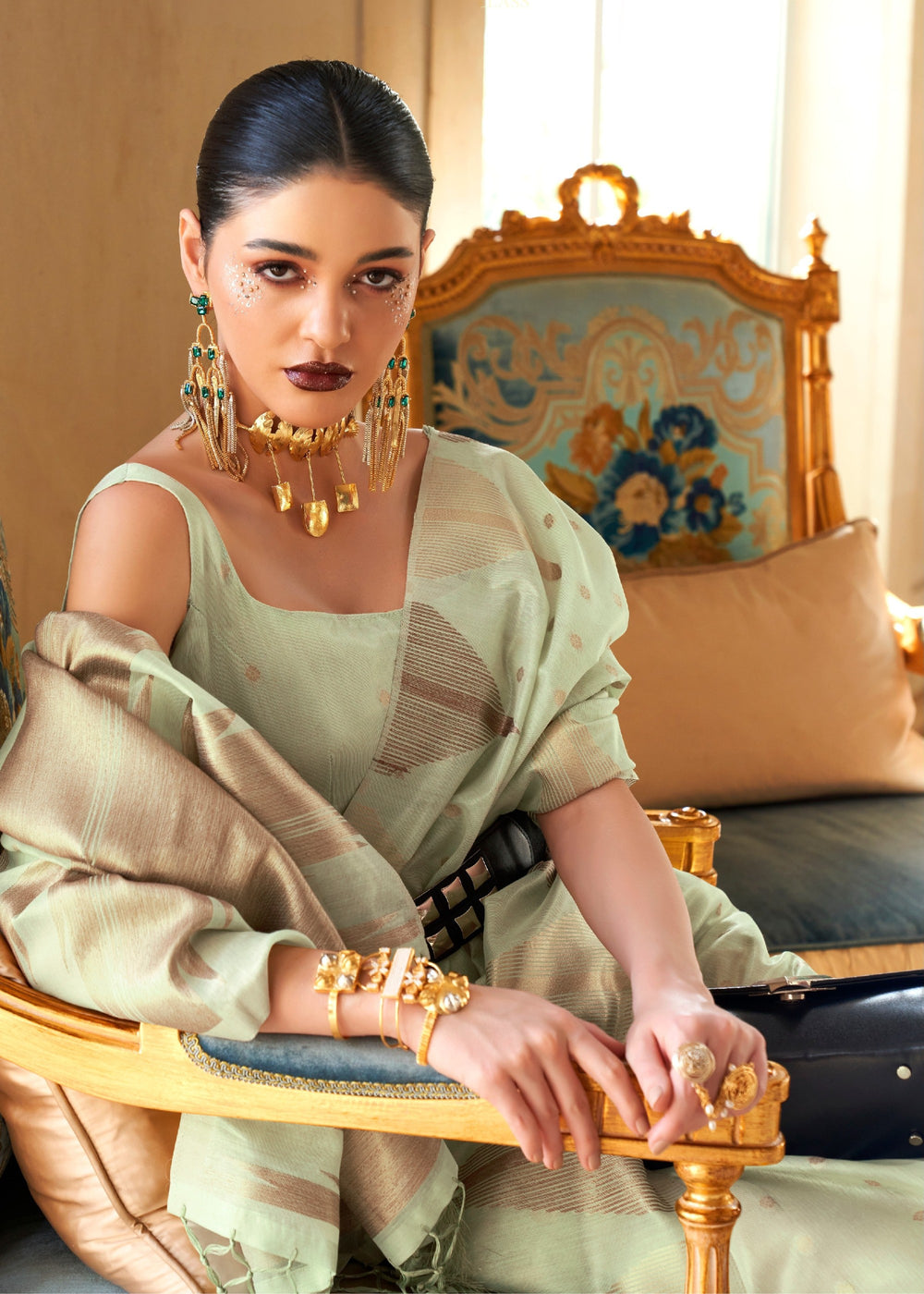 Mint Green Tissue and Khicha Zari Handloom Weaving Silk Saree