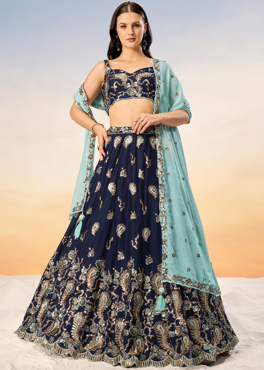 Admiral Blue Silk Lehenga Choli with Thread,Zari,Dori & Sequins work