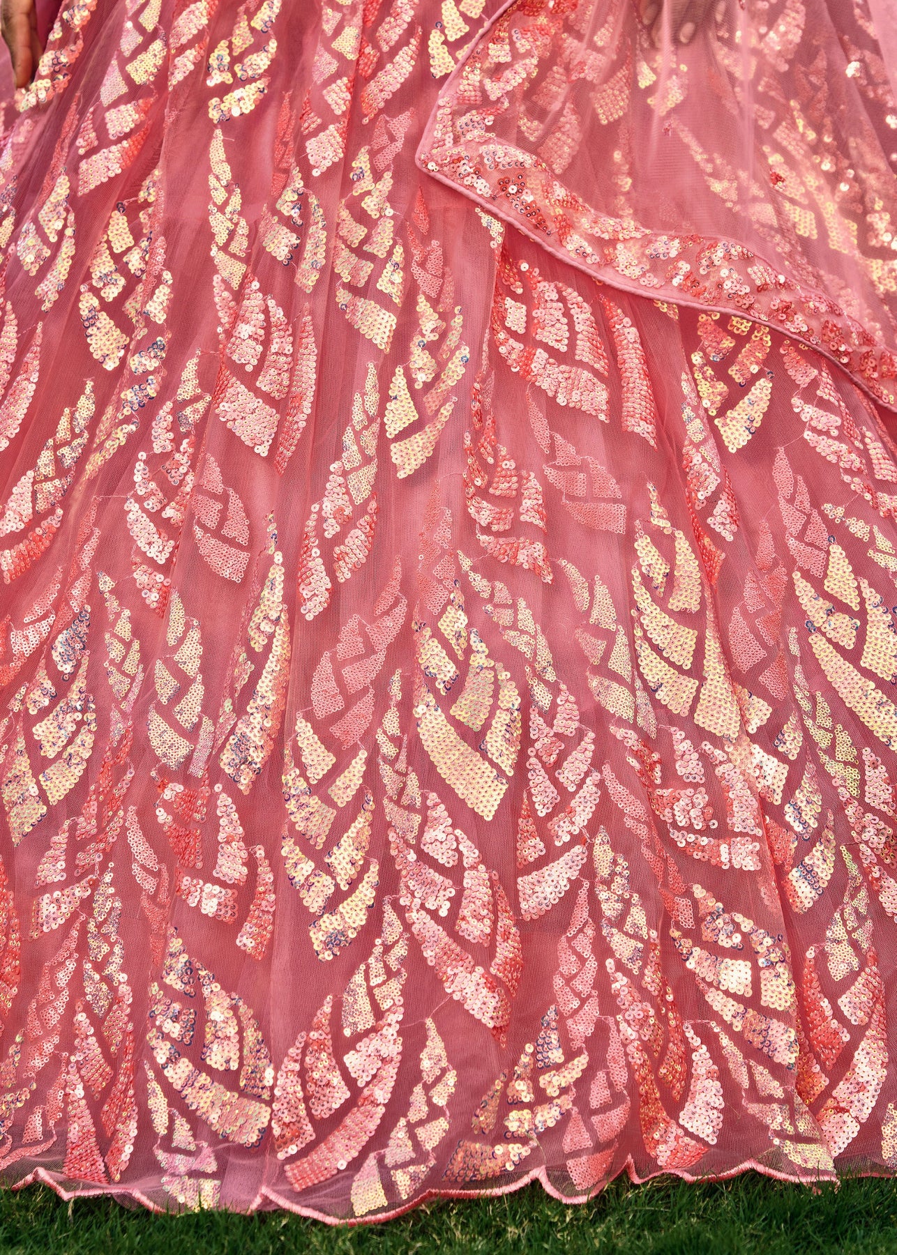Baby Pink Net Lehenga Choli With Multiple Sequins And Thread Embroidery Work