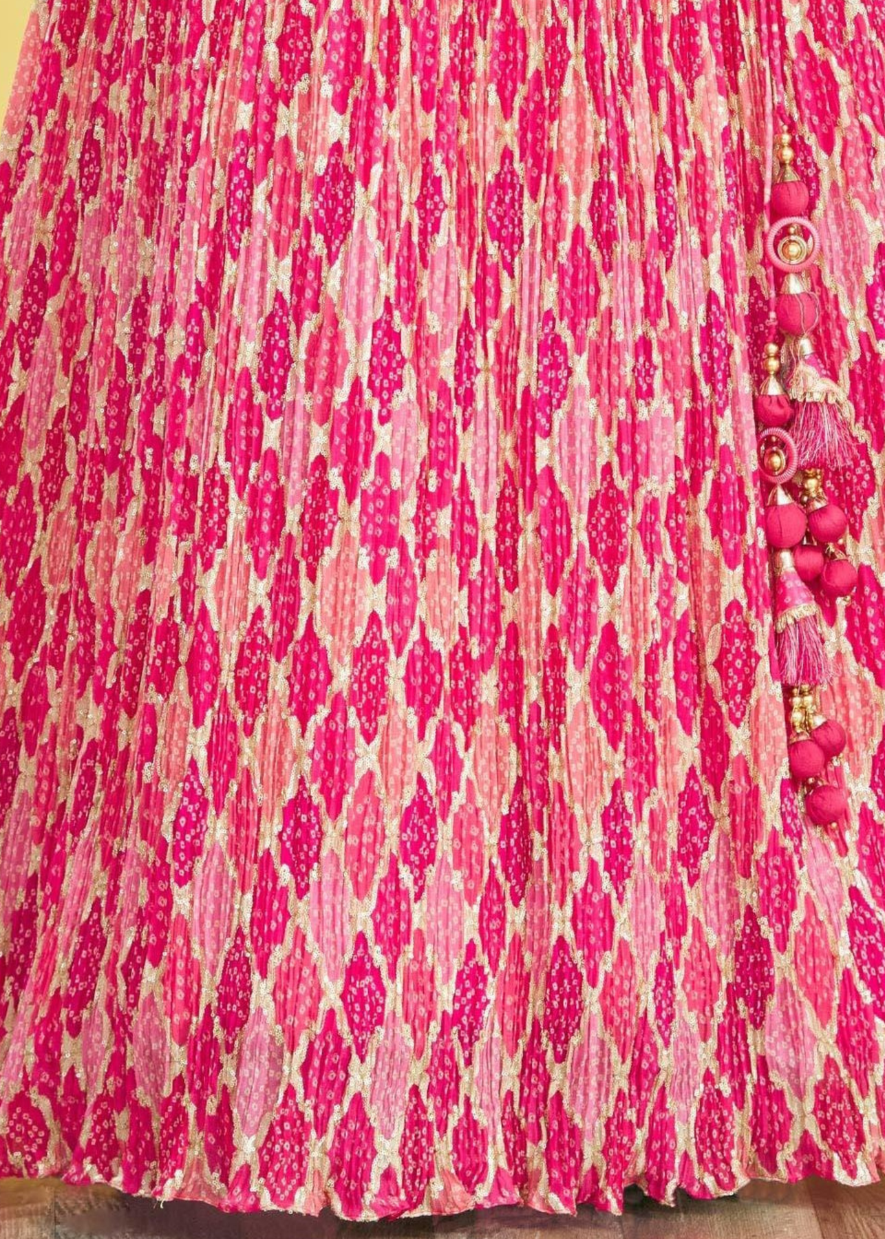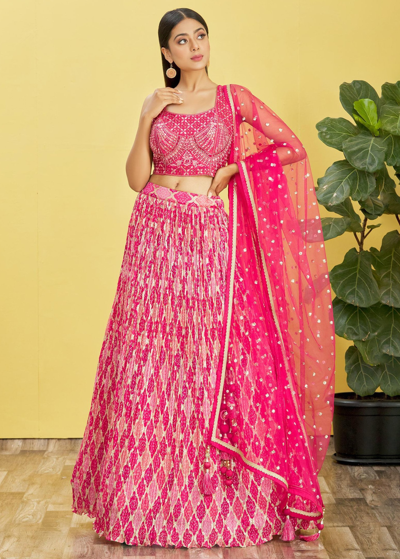 Hot Pink Digital Printed Chinnon Lehenga with Thread,Zari & Sequins Work