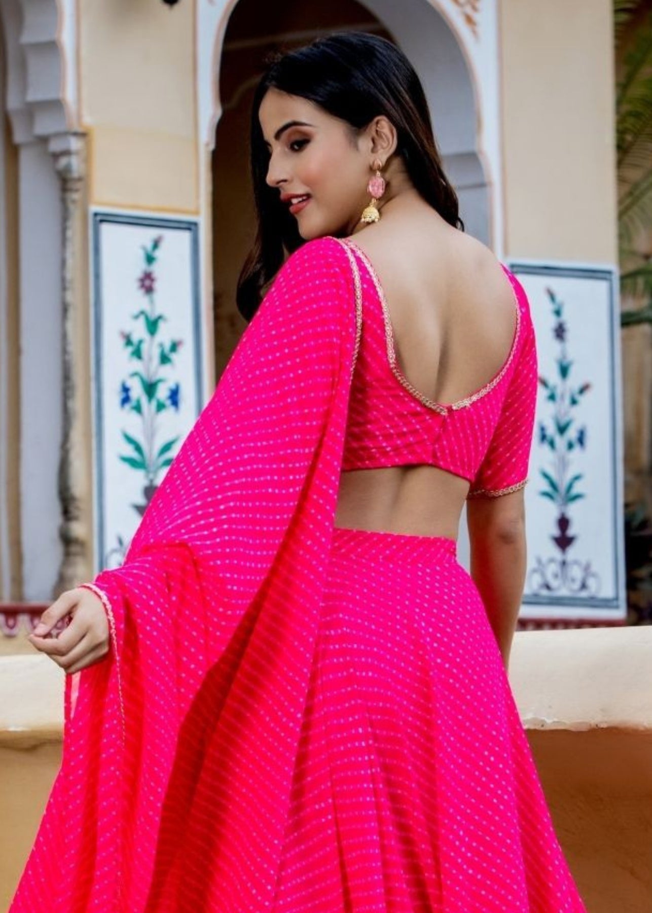 Hot Pink Georgette Leheriya Print Lehenga With Zari And Lace Work